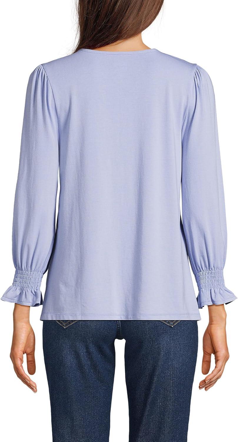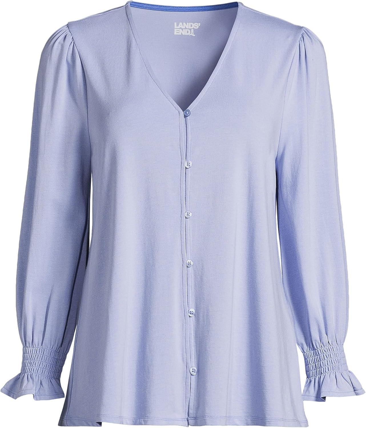 Lands’ End Women’s 3/4 Sleeve Lightweight Jersey Button Front Top(Light Cornflower)