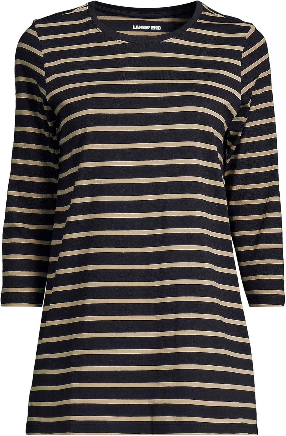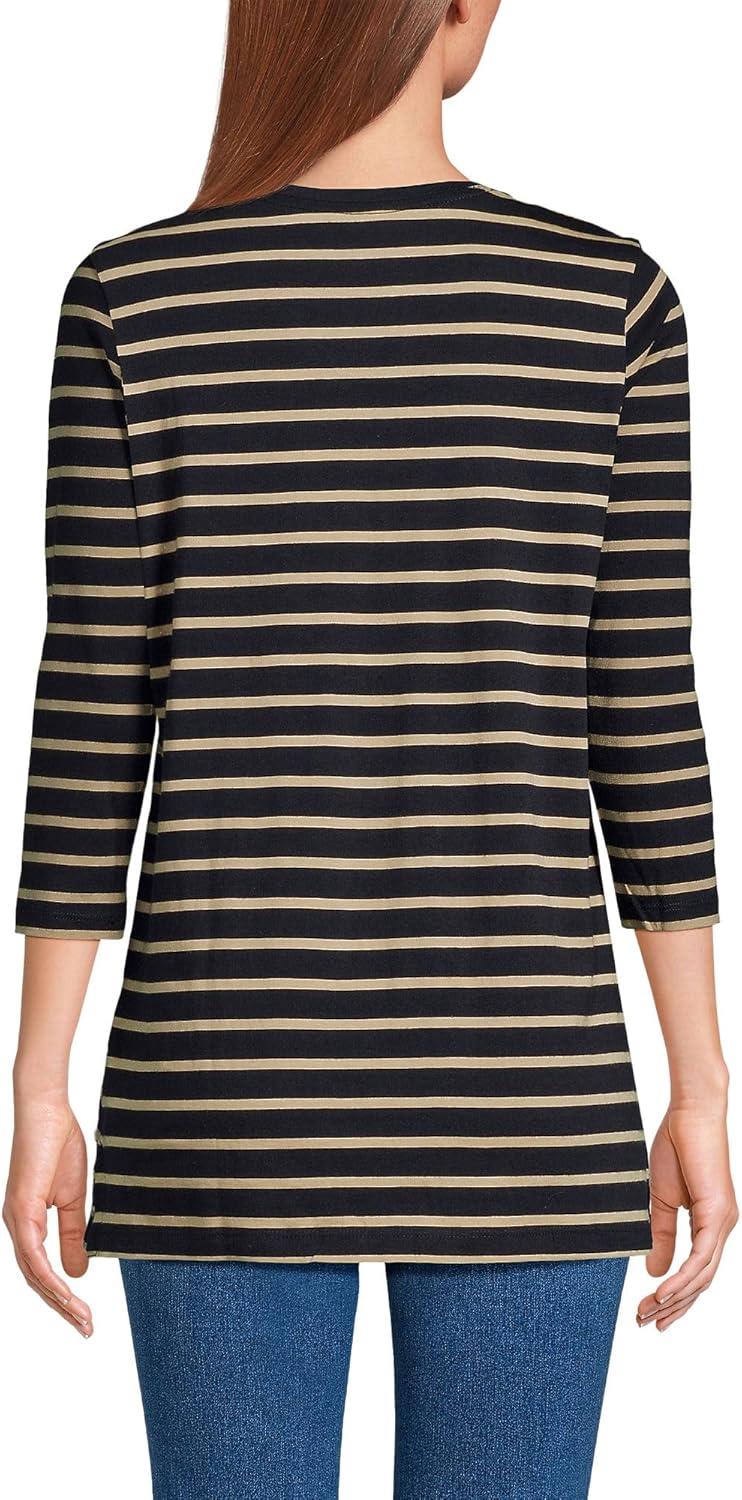 Lands’ End Women’s 3/4 Sleeve Supima Cotton Crewneck Tunic(Black/Almond Tan Breton Stripe)
