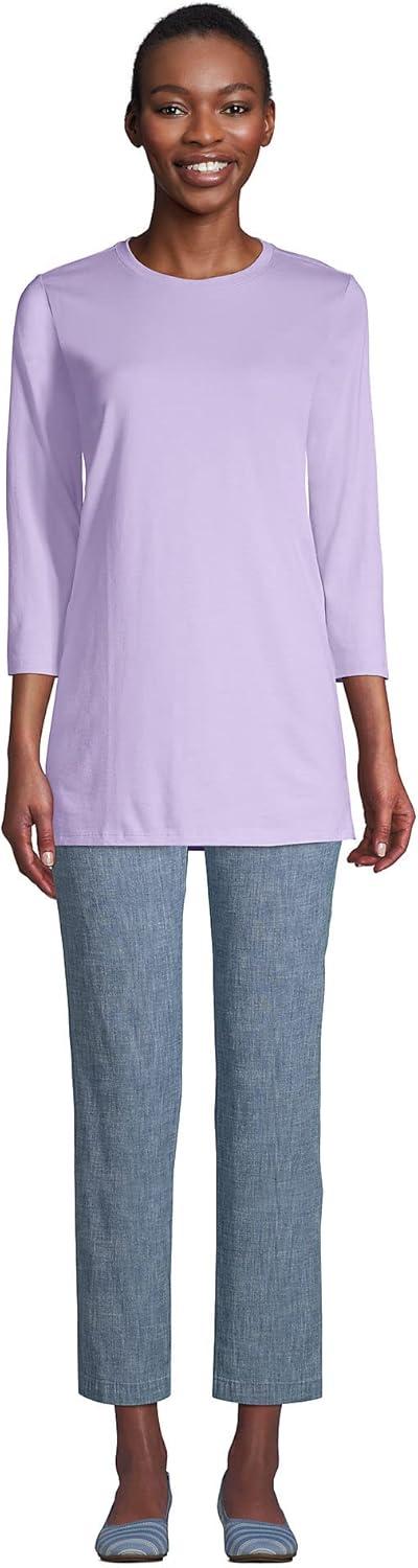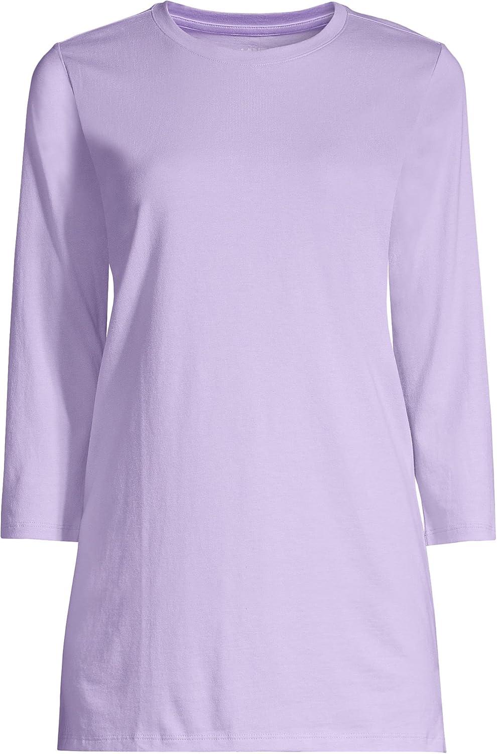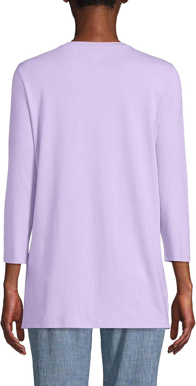 Lands’ End Women’s 3/4 Sleeve Supima Cotton Crewneck Tunic(Lavender Cloud)