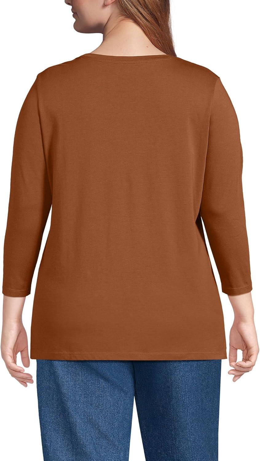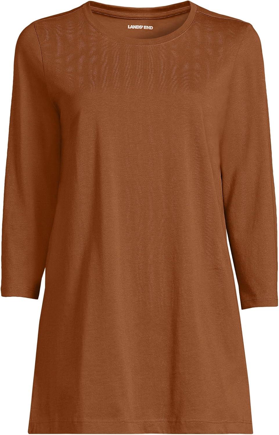 Lands’ End Women’s 3/4 Sleeve Supima Cotton Crewneck Tunic(Rich Ginger Brown)