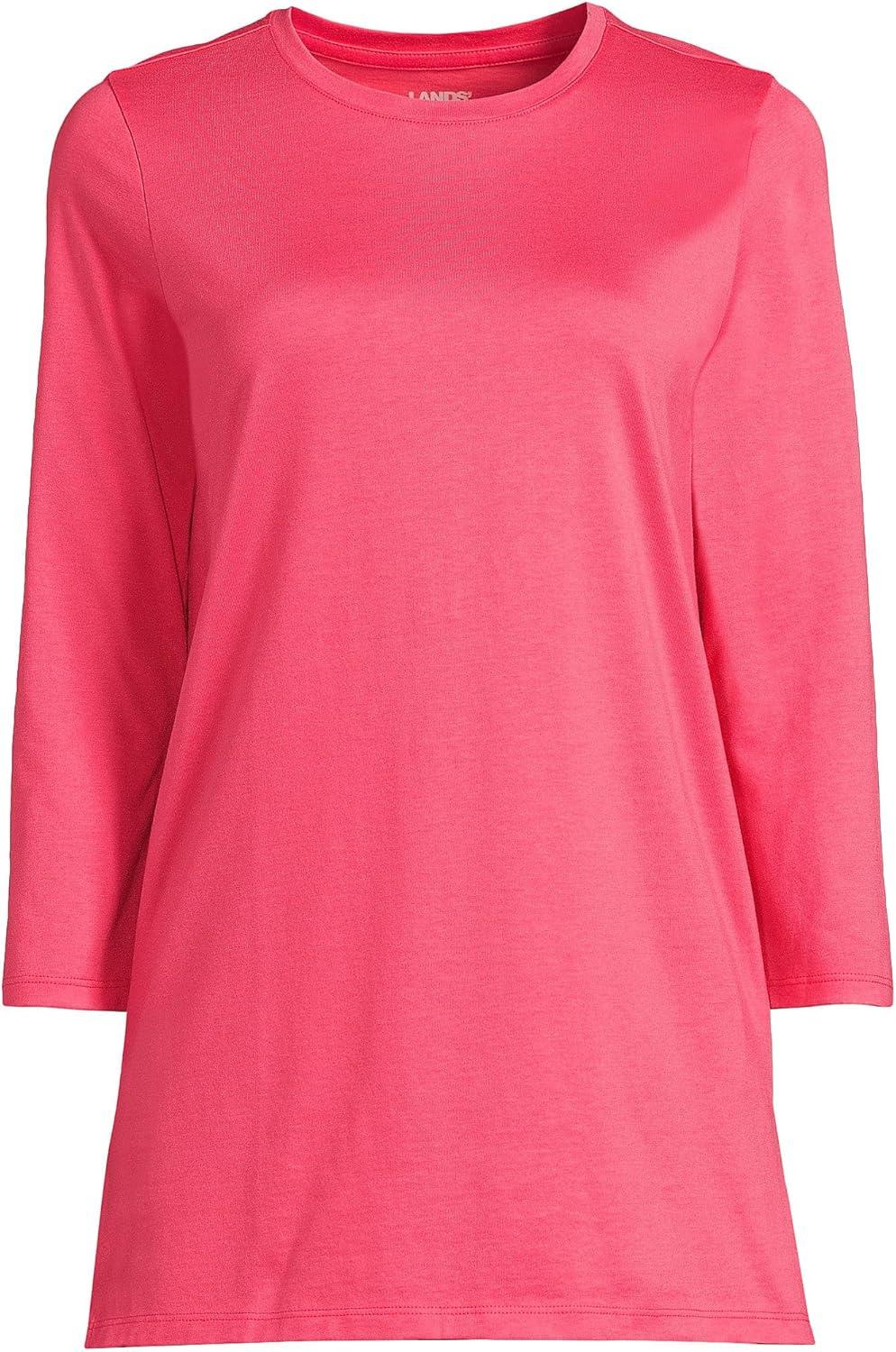 Lands’ End Women’s 3/4 Sleeve Supima Cotton Crewneck Tunic(Rouge Pink)