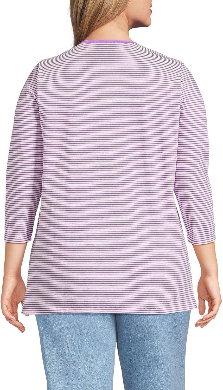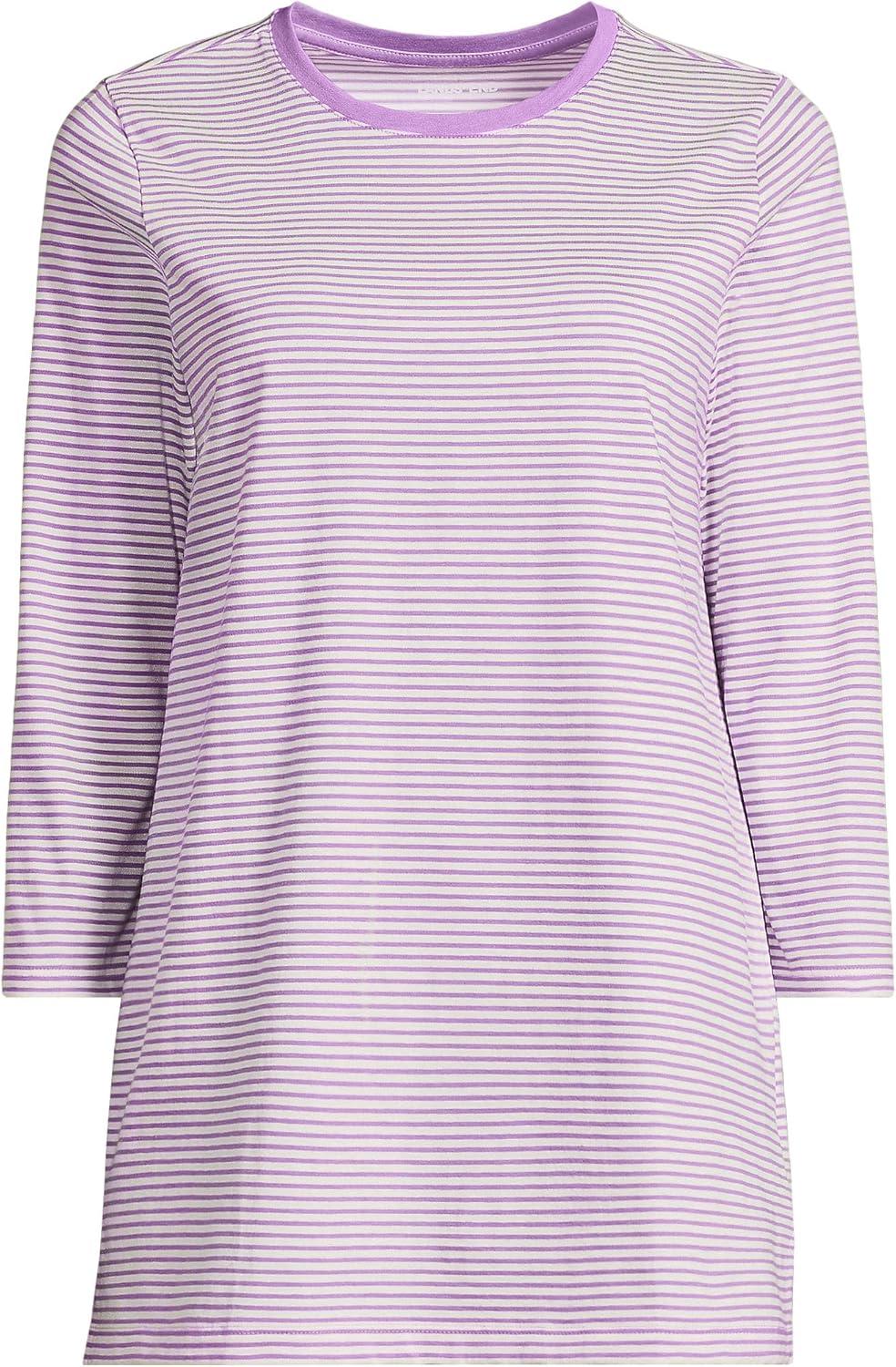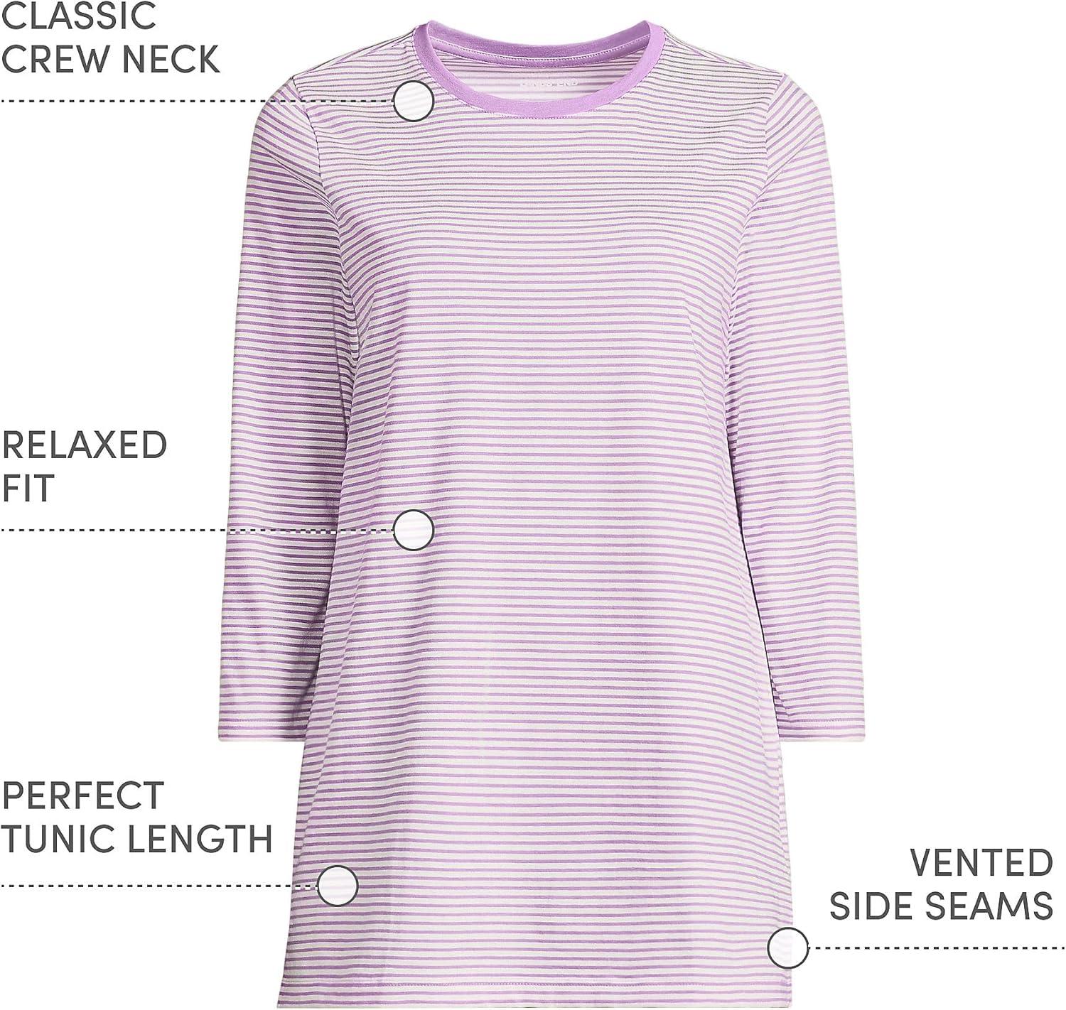 Lands’ End Women’s 3/4 Sleeve Supima Cotton Crewneck Tunic(Soft Orchid Micro Stripe)
