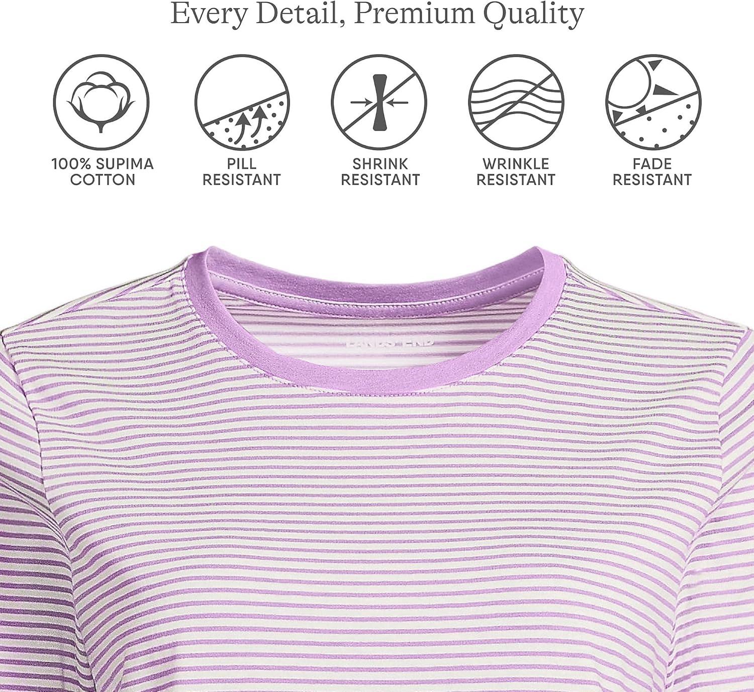 In need of a breathable super-soft and comfy layering tee to get you through the seasons? Look no further than the Lands’ End Women’s ¾ Sleeve Supima Cotton Crewneck Tunic. Made from top-tier American grown cotton Supima is a longer and stronger fiber that resists shrinkage pilling and wrinkles. Ideal for layering underneath sweaters jackets sweatshirts blazers fleece and puffy winter coats you can wear this long tunic just about anywhere during any season. Of course the loose relaxed fit and vibrant colors also make it a cute choice to wear alone with jeans leggings dress pants or a skirt for a day at the office or simply lounging around the house. Designed with your comfort in mind the jersey knit fabric and 100% cotton guarantee means that this will be one of the softest shirts you own. And the variety of colors and patterns ensure it to be one of the most stylish! Lands' End creates and manufactures quality clothing to last a lifetime of comfort and style.
