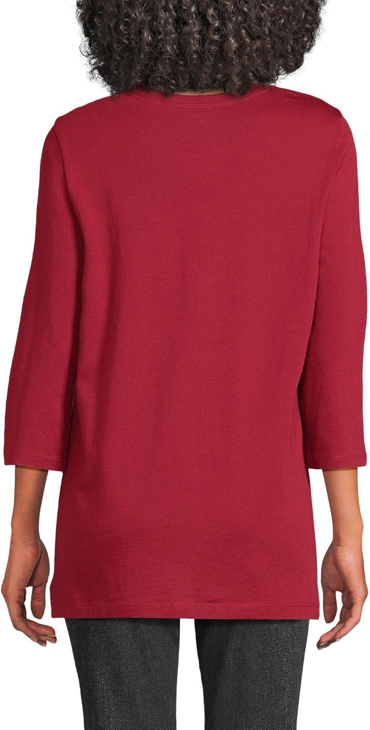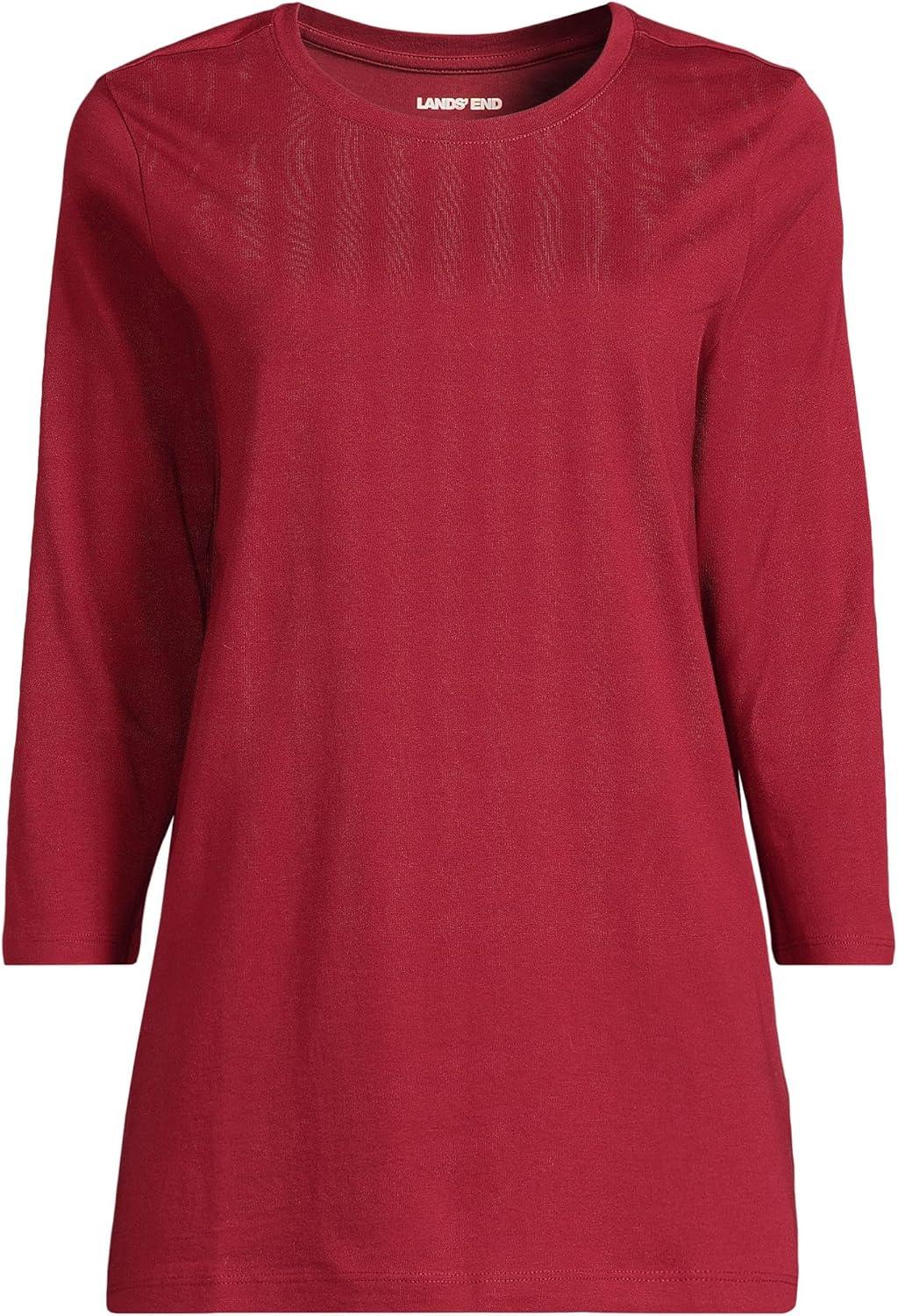 In need of a breathable super-soft and comfy layering tee to get you through the seasons? Look no further than the Lands’ End Women’s ¾ Sleeve Supima Cotton Crewneck Tunic. Made from top-tier American grown cotton Supima is a longer and stronger fiber that resists shrinkage pilling and wrinkles. Ideal for layering underneath sweaters jackets sweatshirts blazers fleece and puffy winter coats you can wear this long tunic just about anywhere during any season. Of course the loose relaxed fit and vibrant colors also make it a cute choice to wear alone with jeans leggings dress pants or a skirt for a day at the office or simply lounging around the house. Designed with your comfort in mind the jersey knit fabric and 100% cotton guarantee means that this will be one of the softest shirts you own. And the variety of colors and patterns ensure it to be one of the most stylish! Lands' End creates and manufactures quality clothing to last a lifetime of comfort and style.