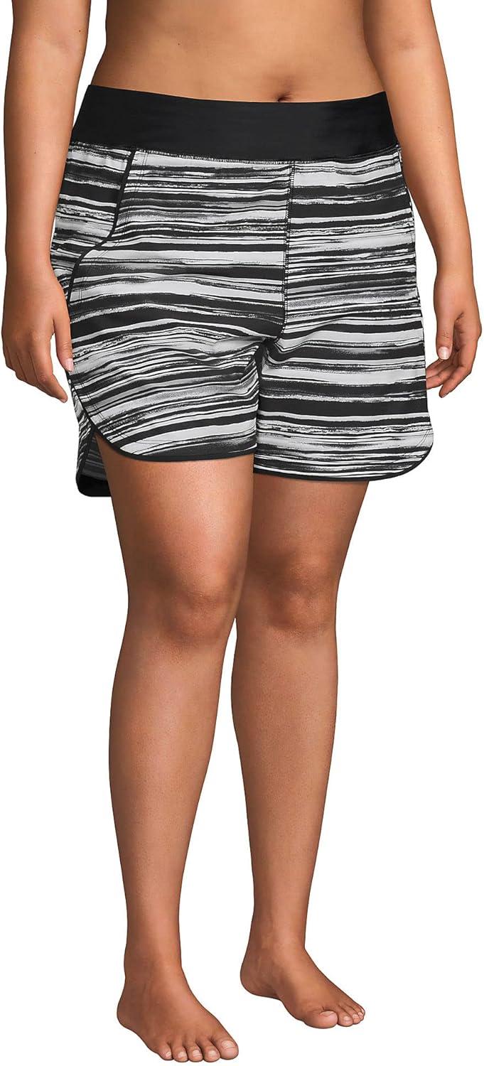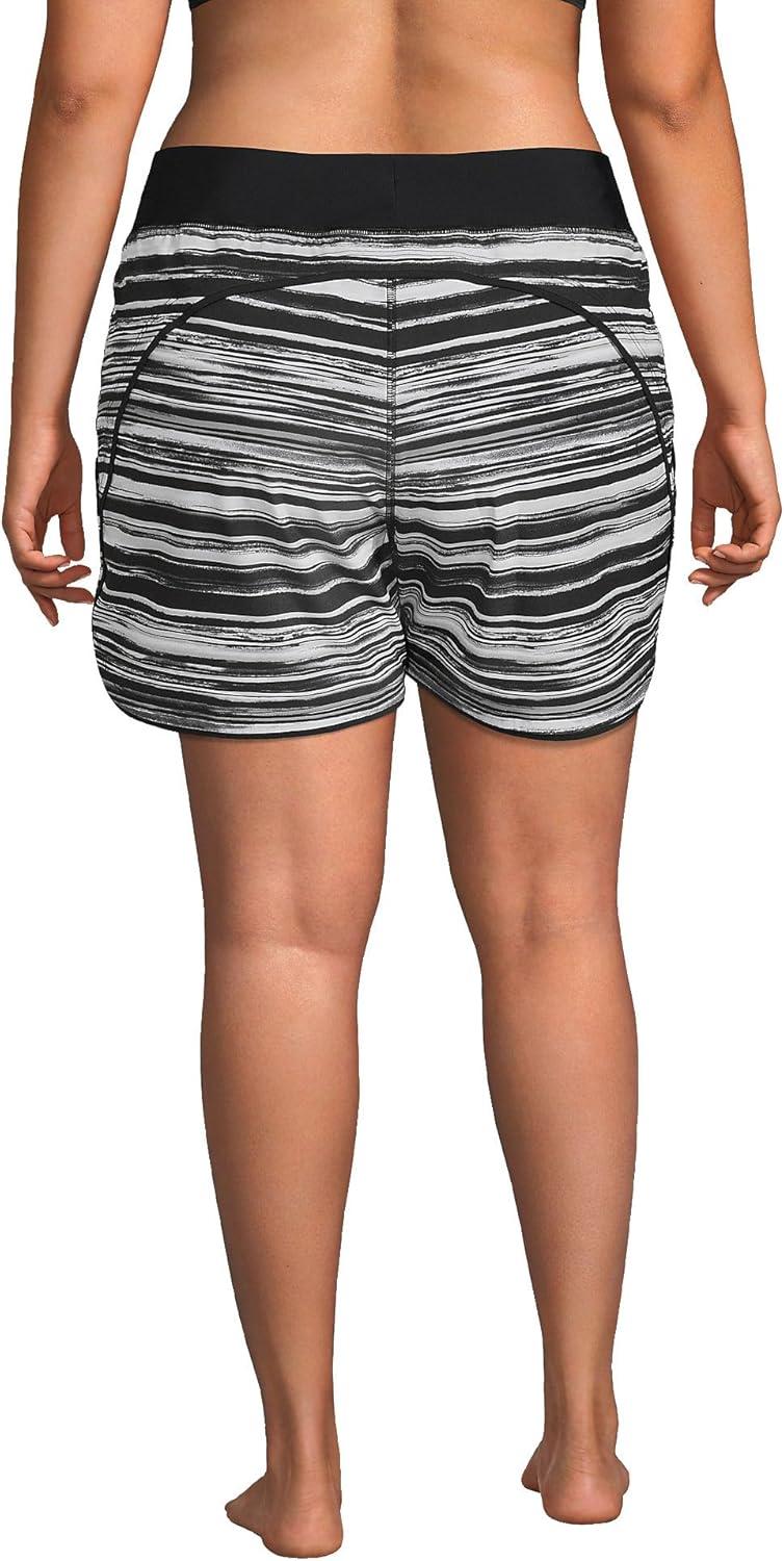 Lands’ End Women’s 5″ Quick Dry Elastic Waist Board Shorts Swim Cover-up Shorts with Panty(Black/White Ombre)