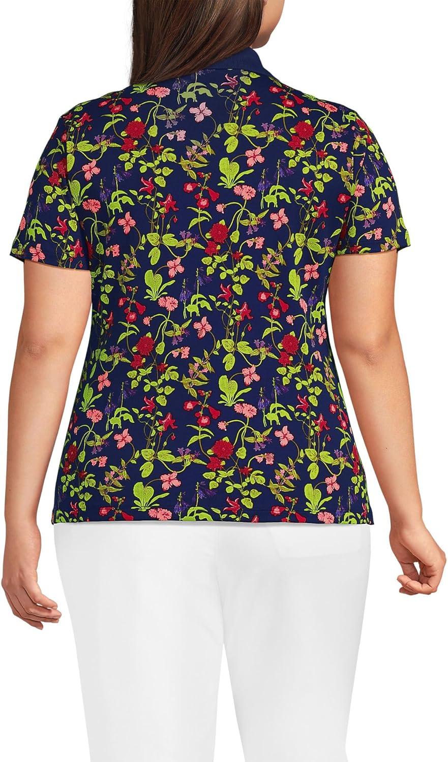 Lands’ End Women’s American-Grown Supima Cotton Polo Shirt(Deep Sea Multi Garden Floral)