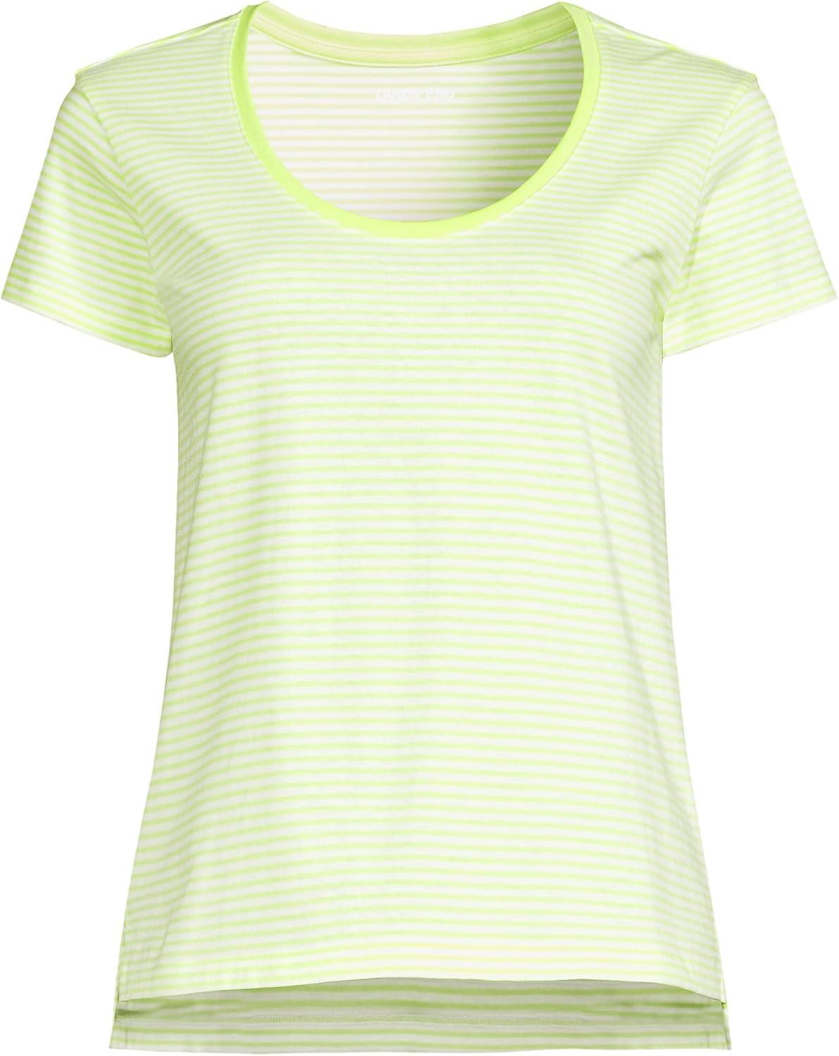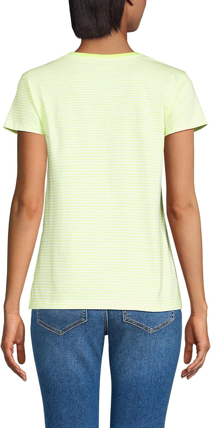 Lands’ End Women’s American-Grown Supima Cotton Short Sleeve Scoop Neck Tee(Limoncello Yellow Micro Stripe)