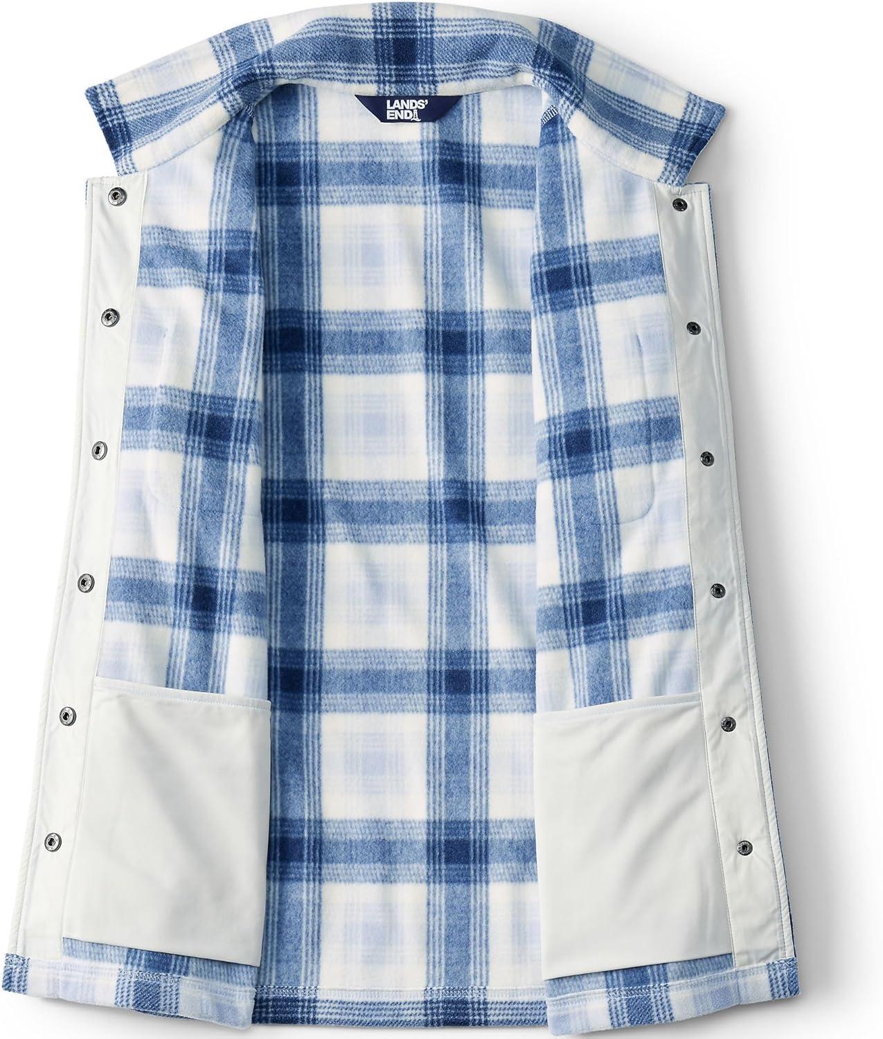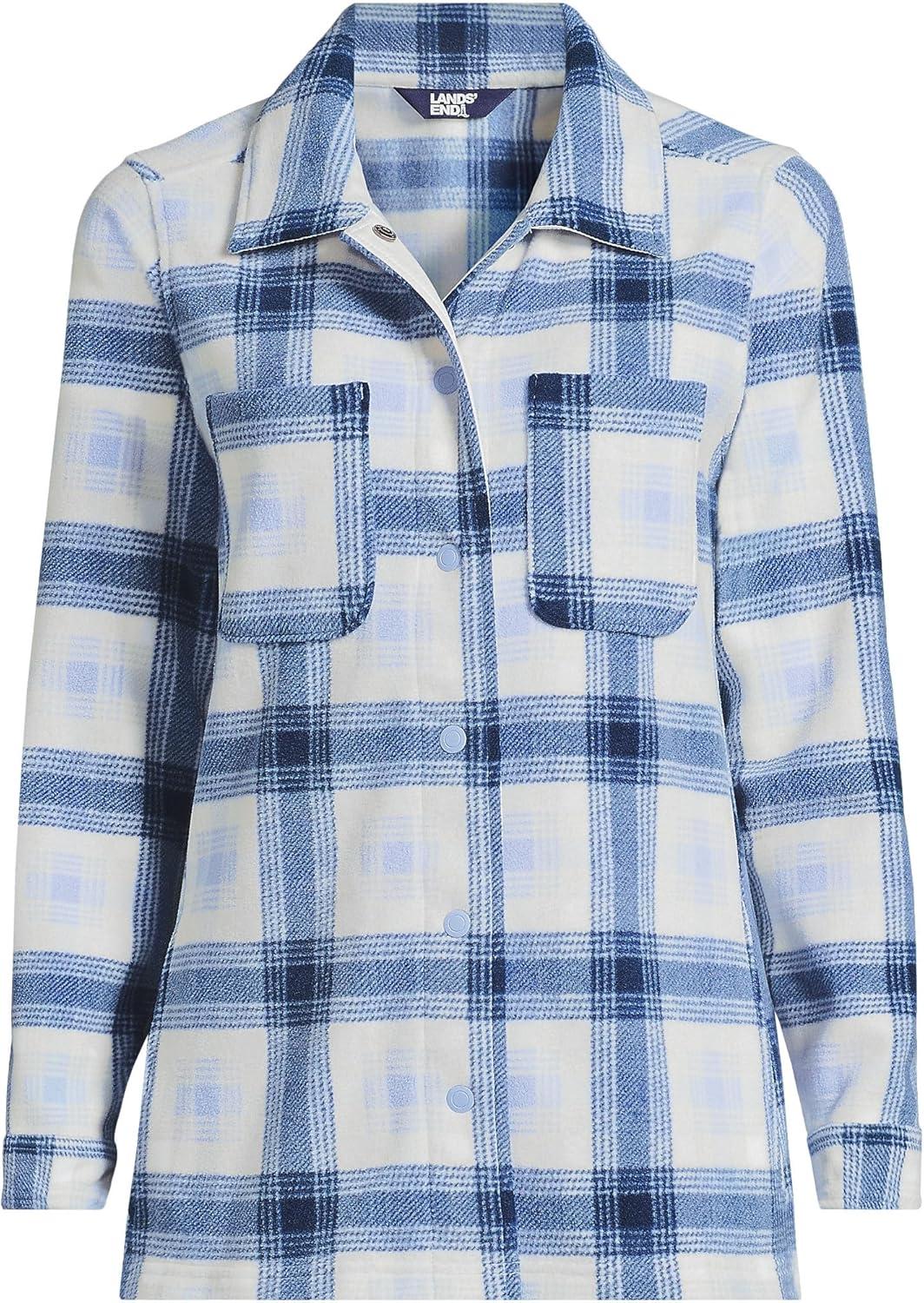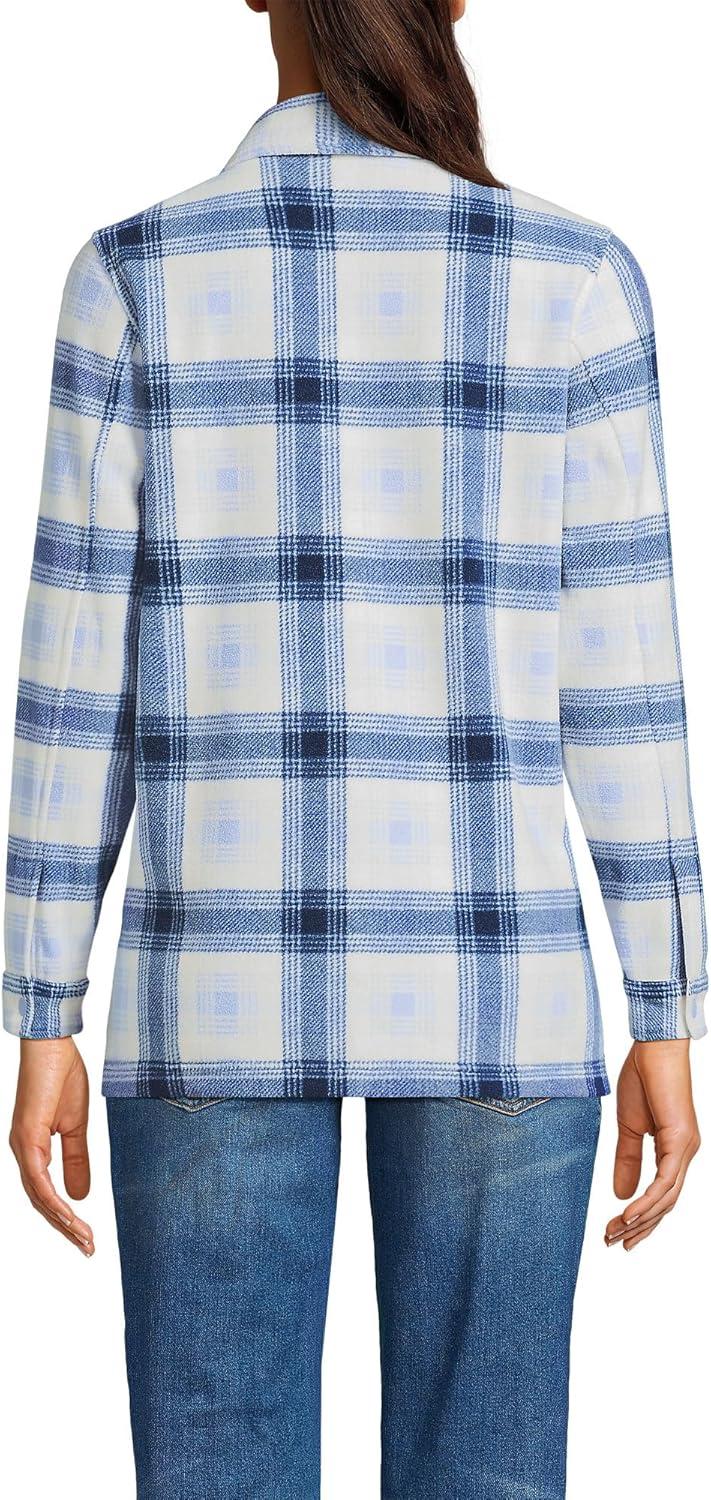Lands’ End Women’s Anyweather Fleece Shirt Jacket(Deep Sea Navy/Cornflower Plaid)