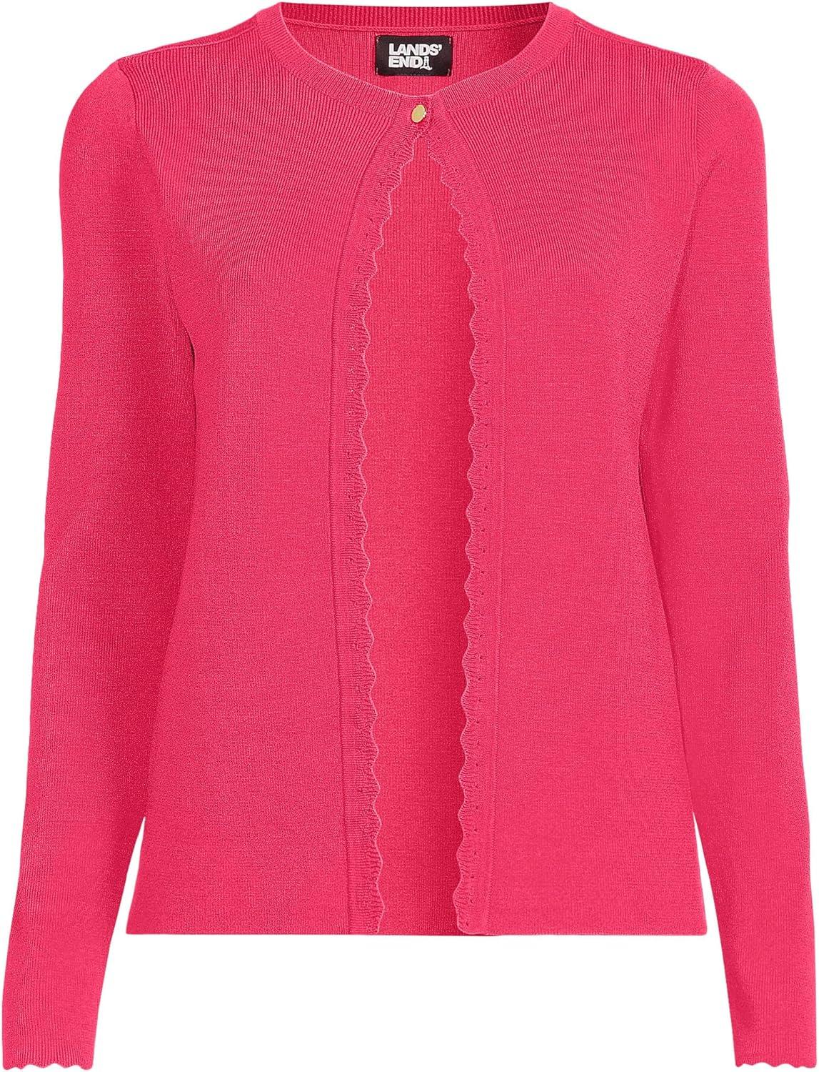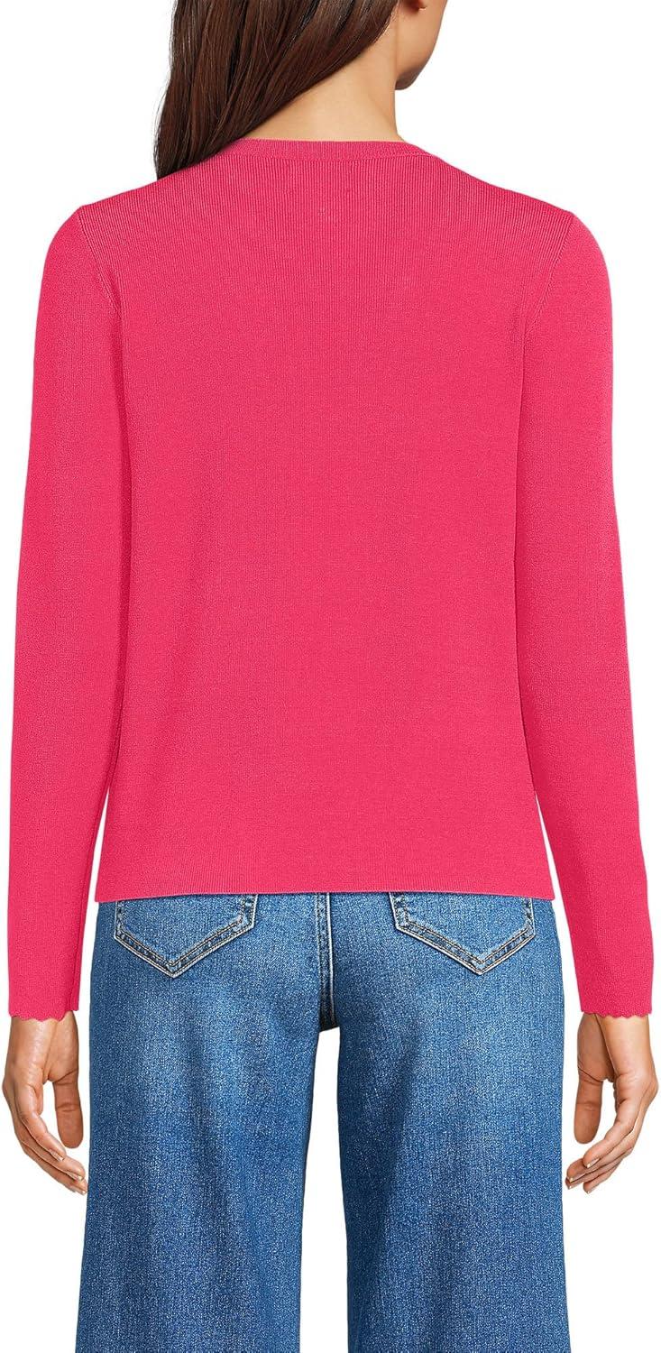 Lands’ End Women’s Blend Scallop Edge Fitted Cardigan Sweater(Berry Rouge)