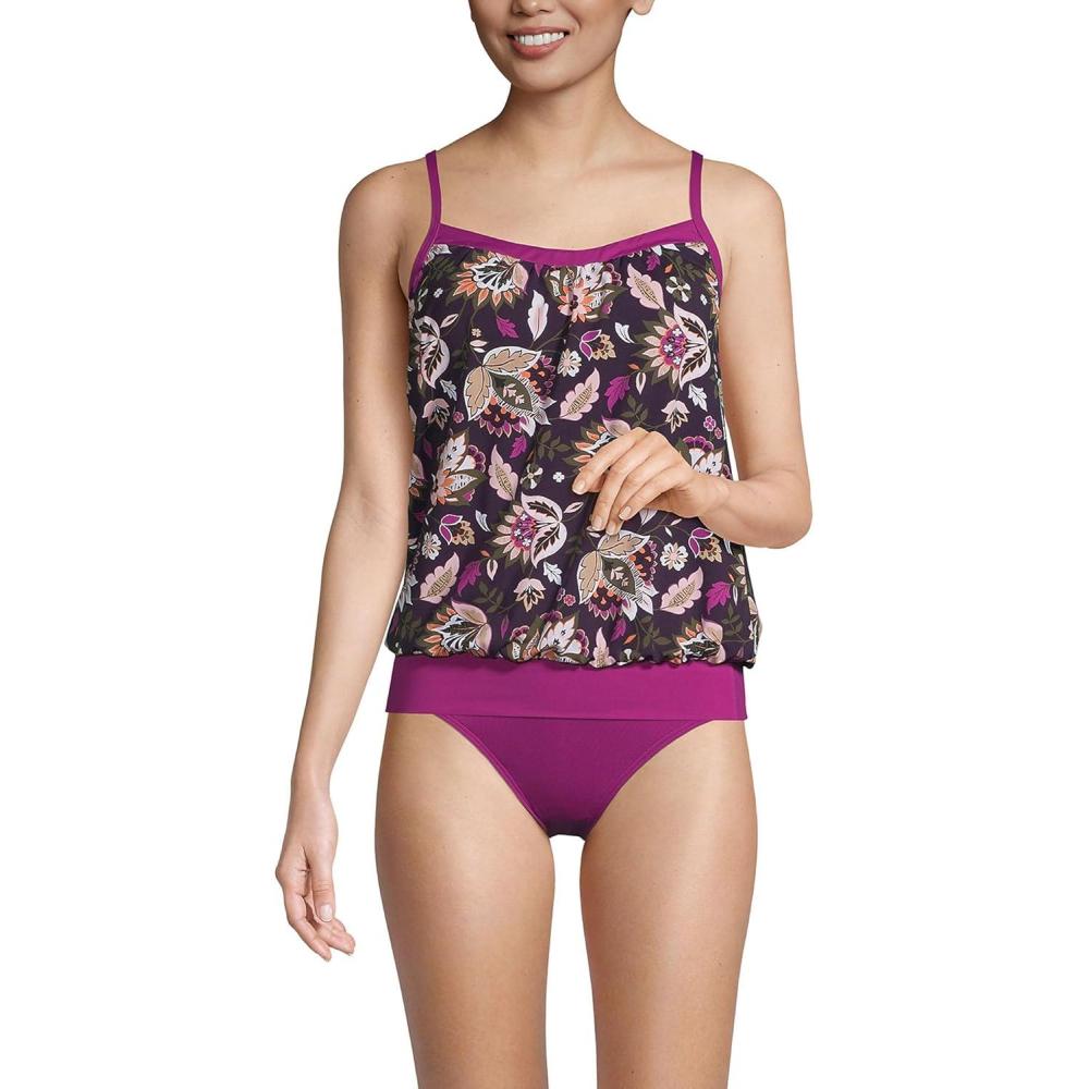 Lands’ End Women’s Blouson Tummy Hiding Tankini Top Swimsuit Adjustable Straps(Violet)