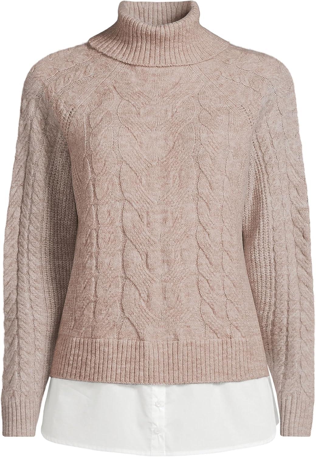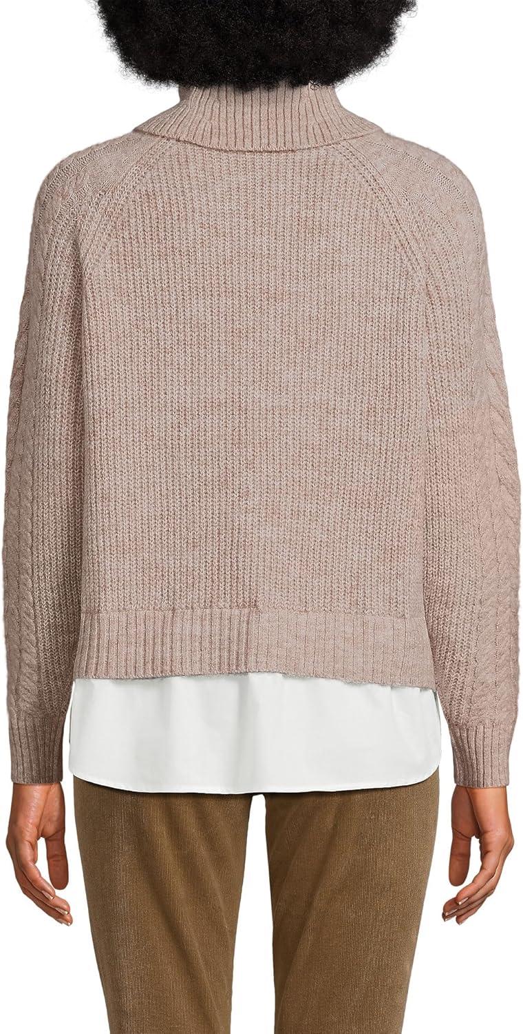 Lands’ End Women’s Cable Turtleneck with Mock Shirt Detail Sweater(Oatmeal Marl)