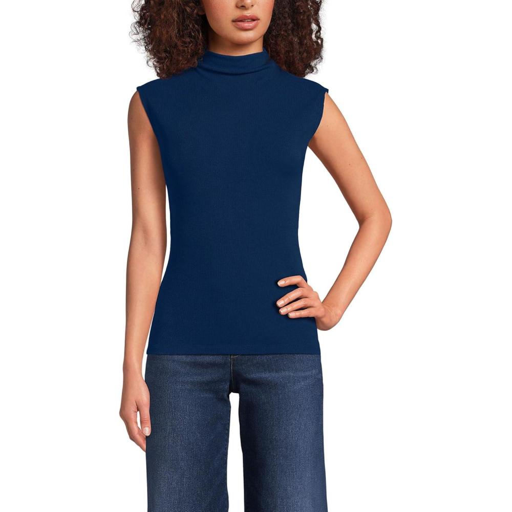 Lands’ End Women’s Cap Sleeve Drapey Rib Fitted Funnel Neck Tank(Deep Sea Navy)