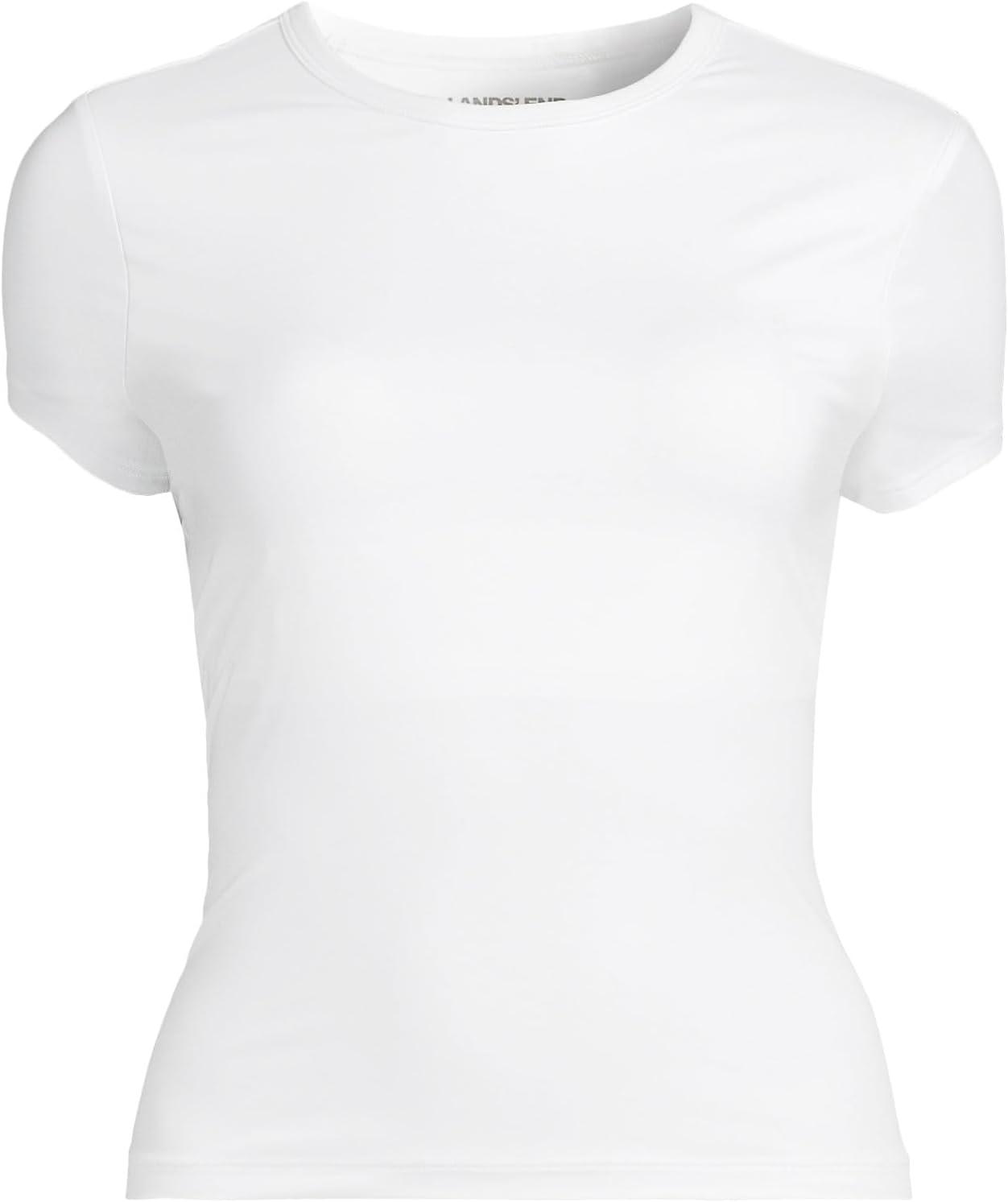 Lands’ End Women’s Cap Sleeve Fitted with Built in Bra UPF 50 Rash Guard(White)