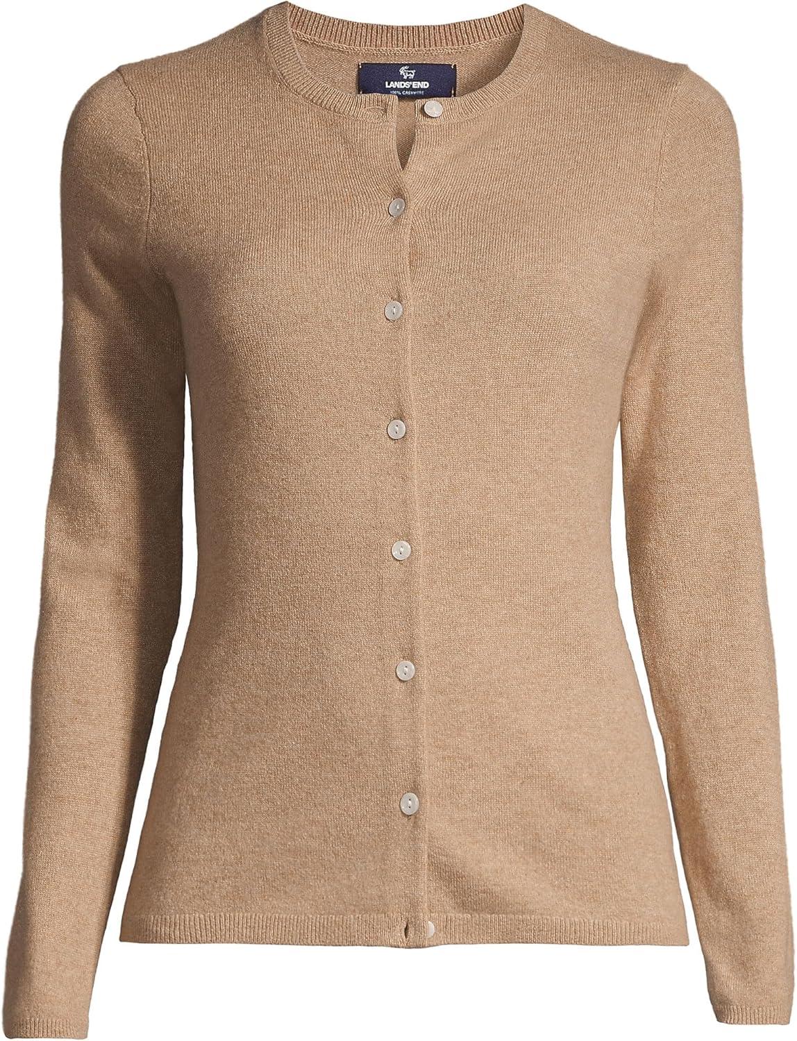 Lands’ End Women’s Cashmere Cardigan Sweater(Vicuna Heather)