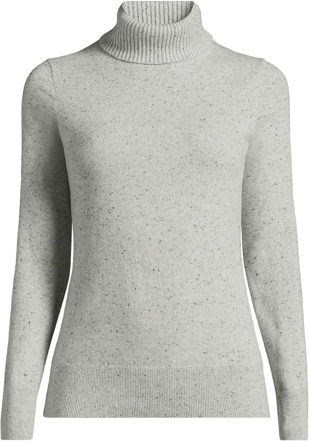 Lands’ End Women’s Cashmere Turtleneck Sweater(Gray/Black Donegal)