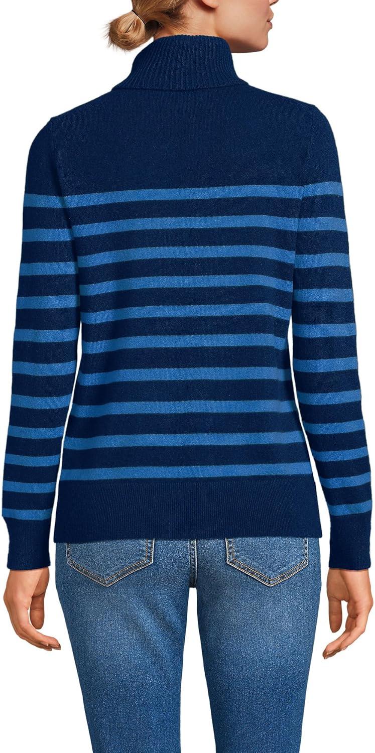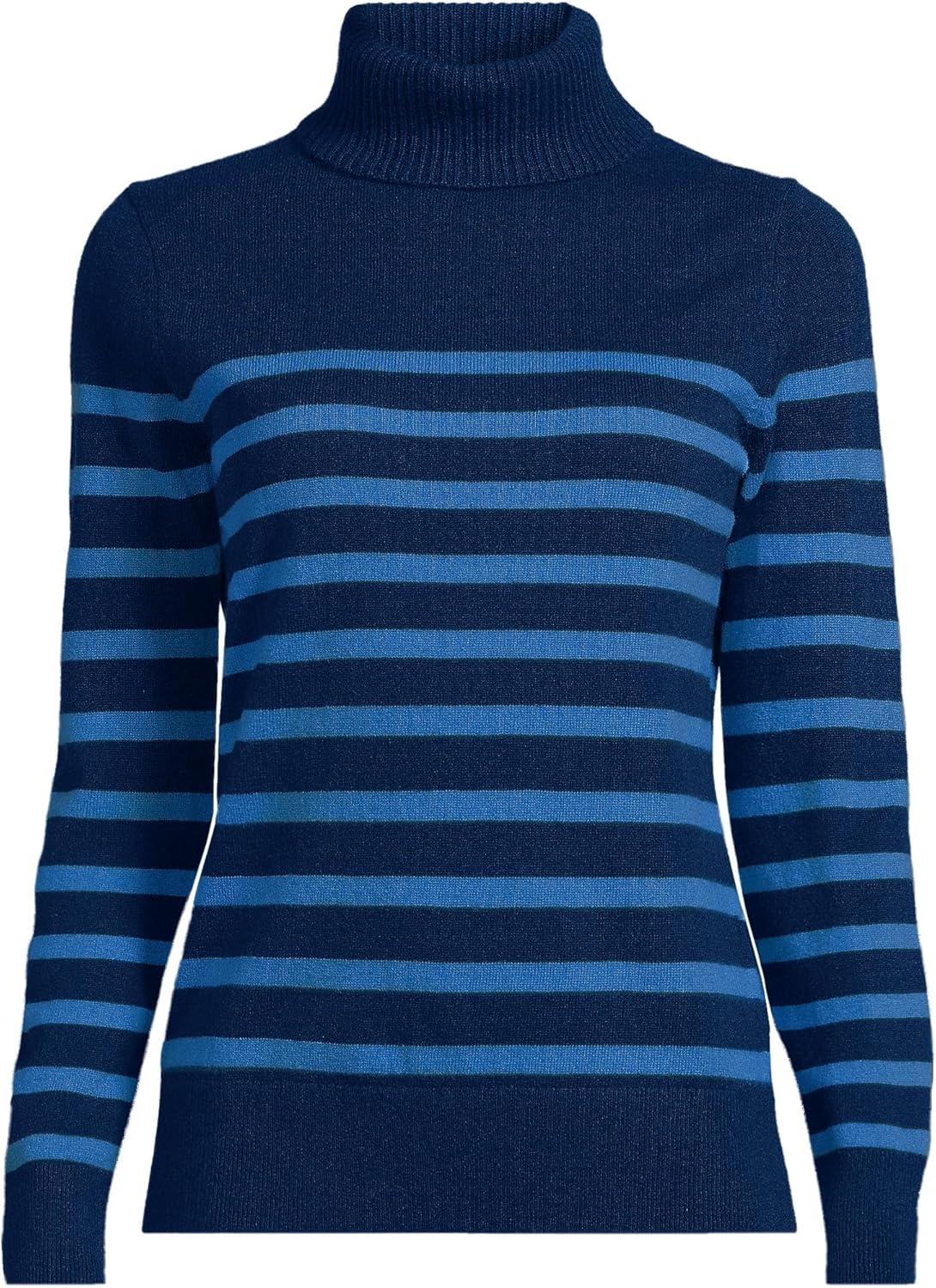 Lands’ End Women’s Cashmere Turtleneck Sweater(Navy/Cobalt Placed Stripe)