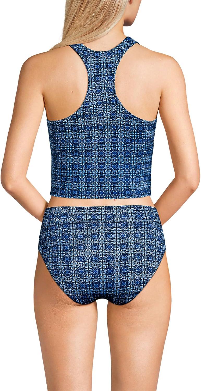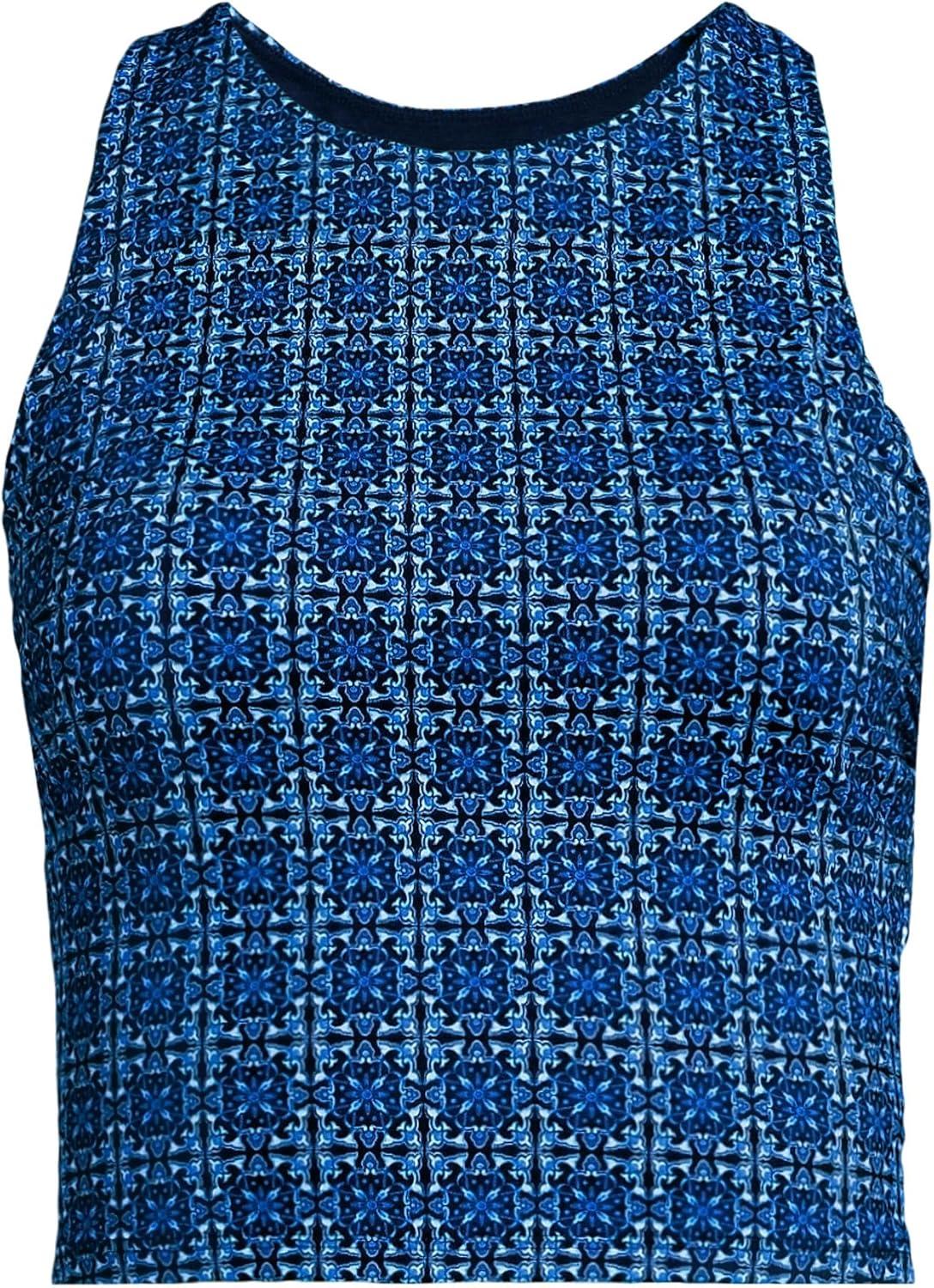 Lands’ End Women’s Chlorine Resistant High Neck Racerback Midkini Swimsuit Top(Navy Mosaic Mini Tile)
