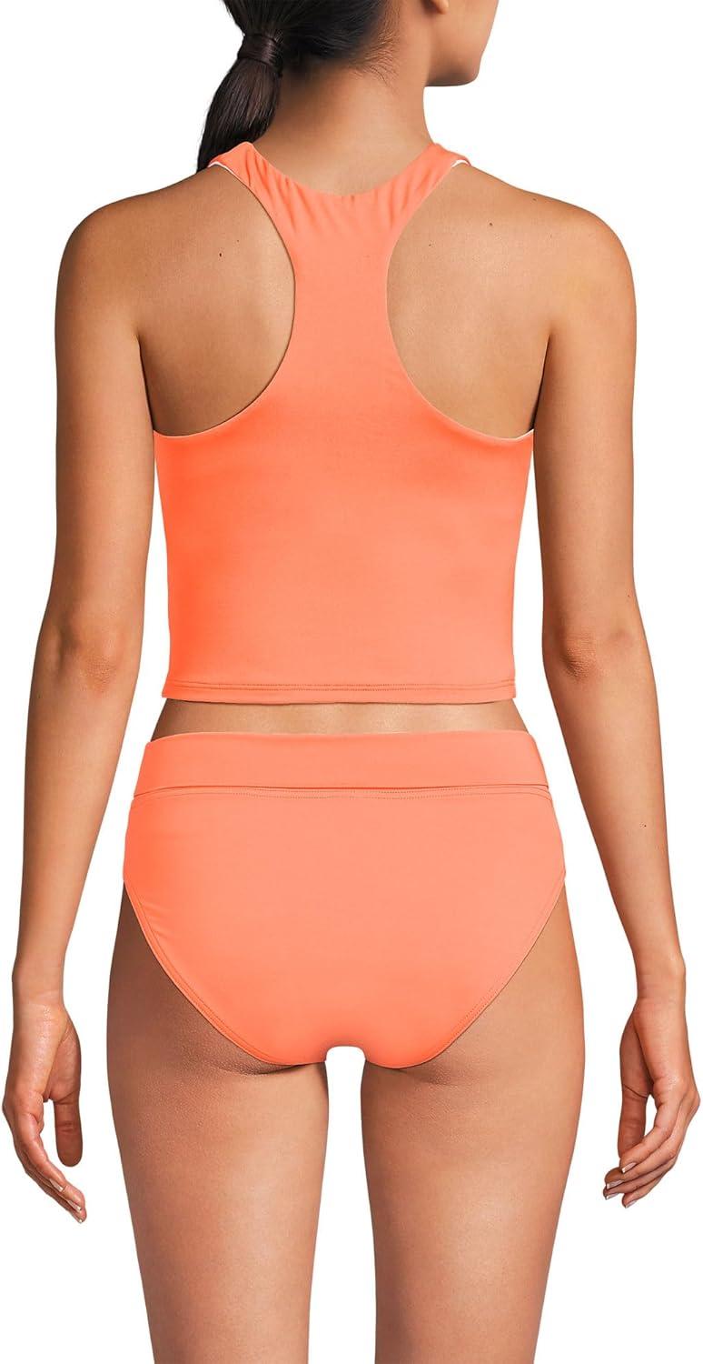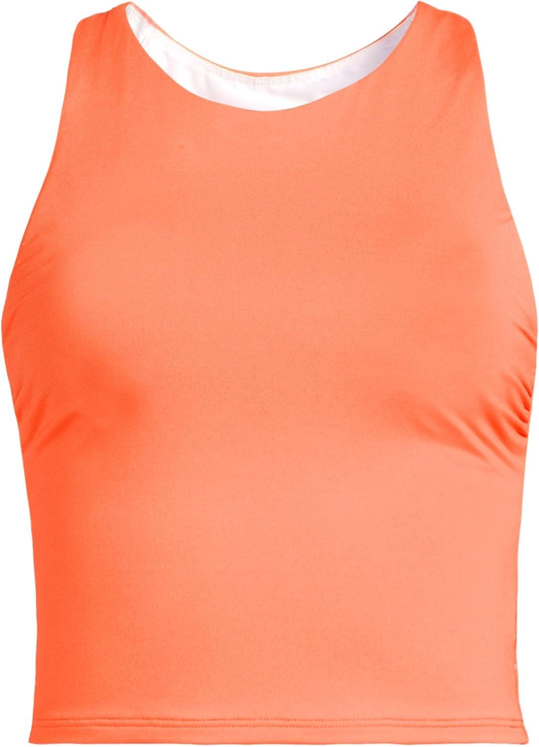 Lands’ End Women’s Chlorine Resistant High Neck Racerback Midkini Swimsuit Top(Papaya Orange)
