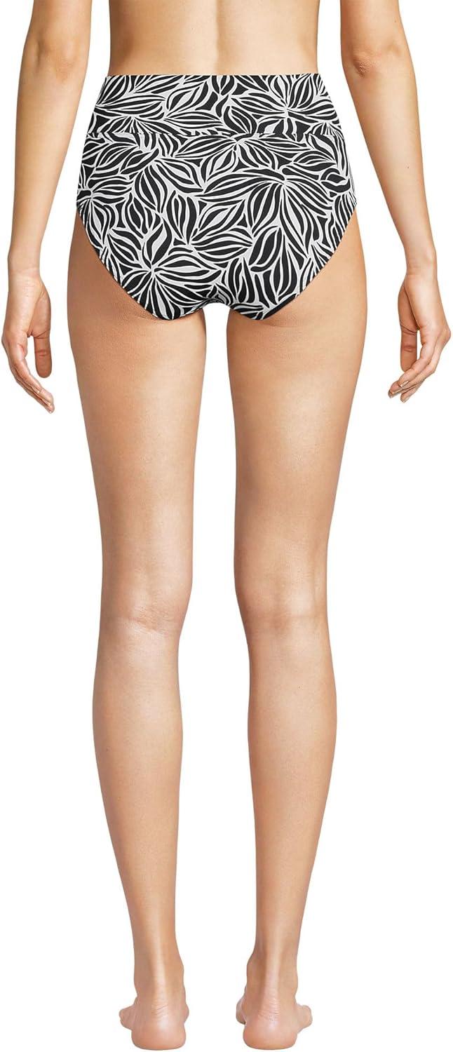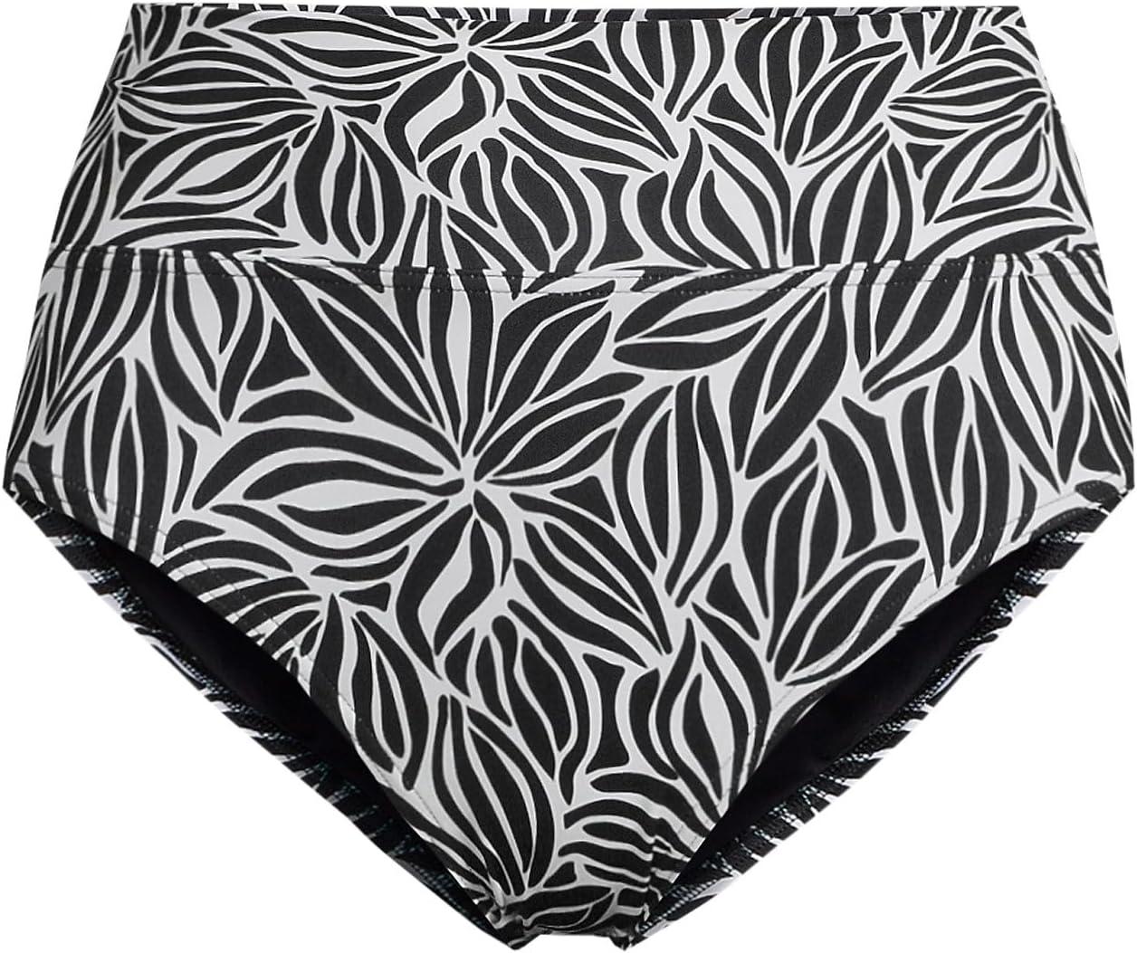 Lands’ End Women’s Chlorine Resistant Pinchless High Waisted Bikini Bottoms(Black/White Abstract Floral)
