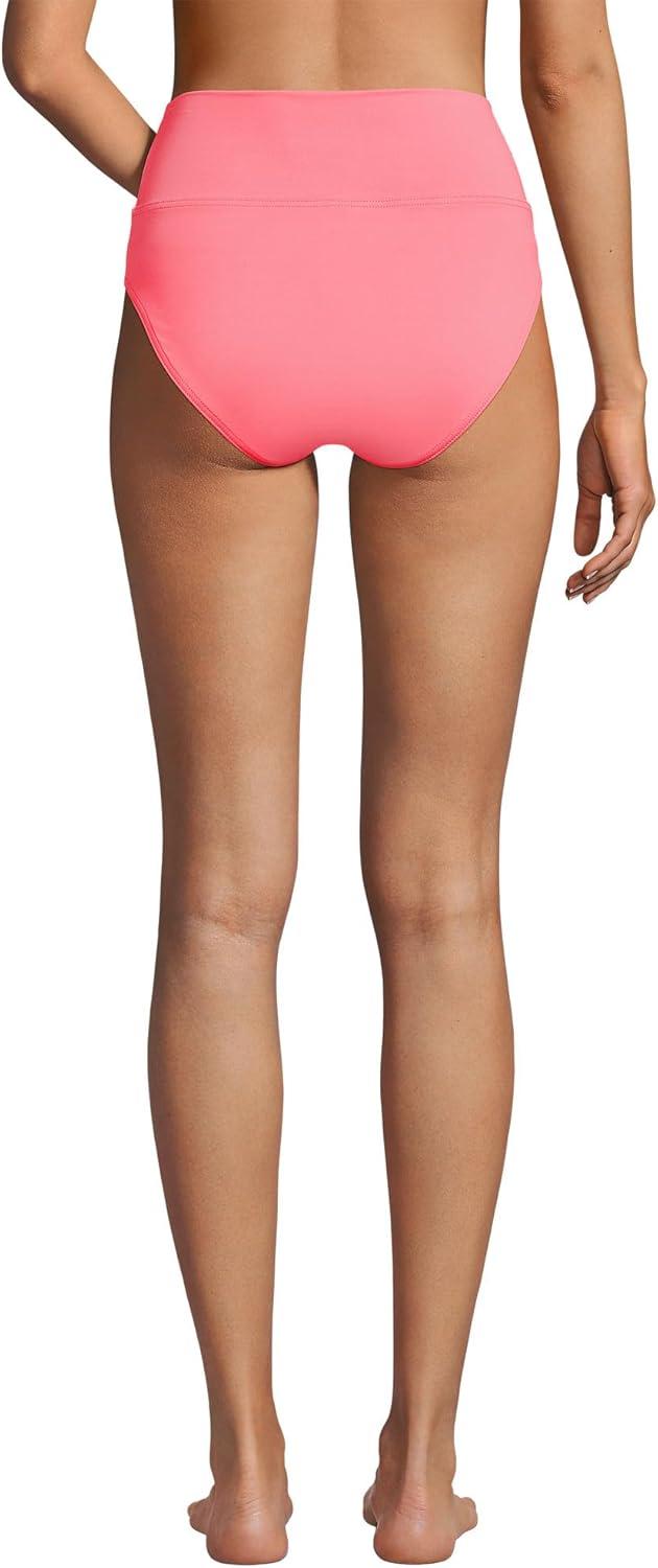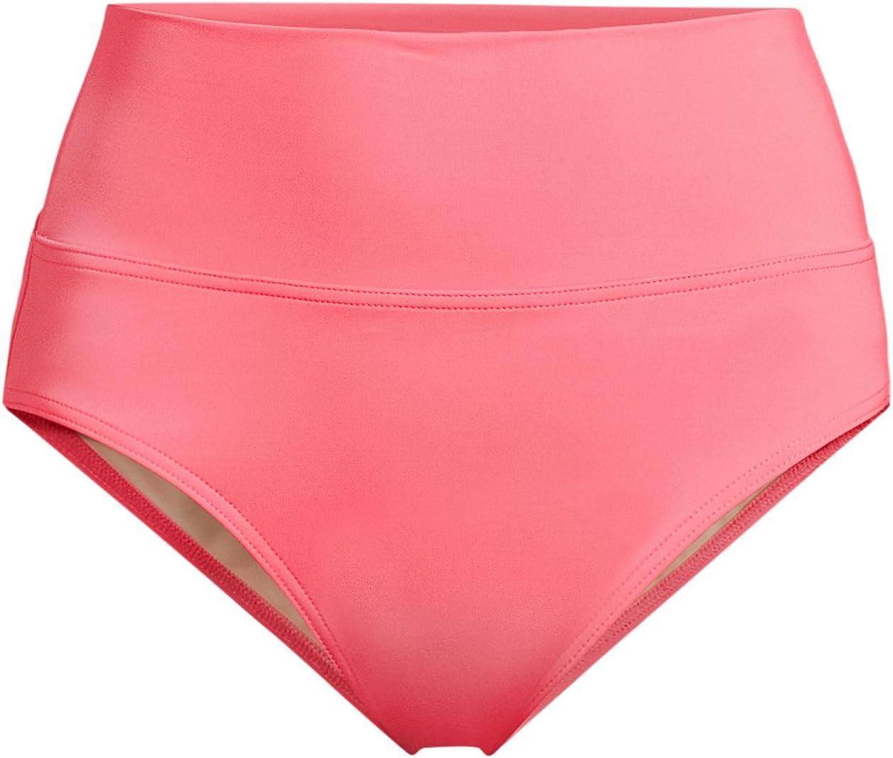 Lands’ End Women’s Chlorine Resistant Pinchless High Waisted Bikini Bottoms(Dark Coral)