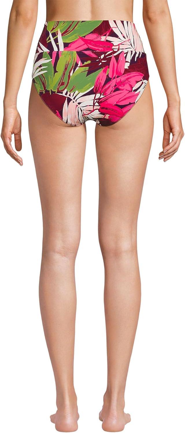 Lands’ End Women’s Chlorine Resistant Pinchless High Waisted Bikini Bottoms(Dark Wine Multi Tropical Palms)