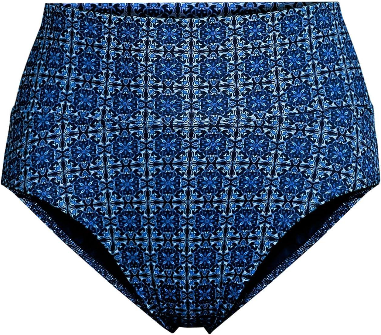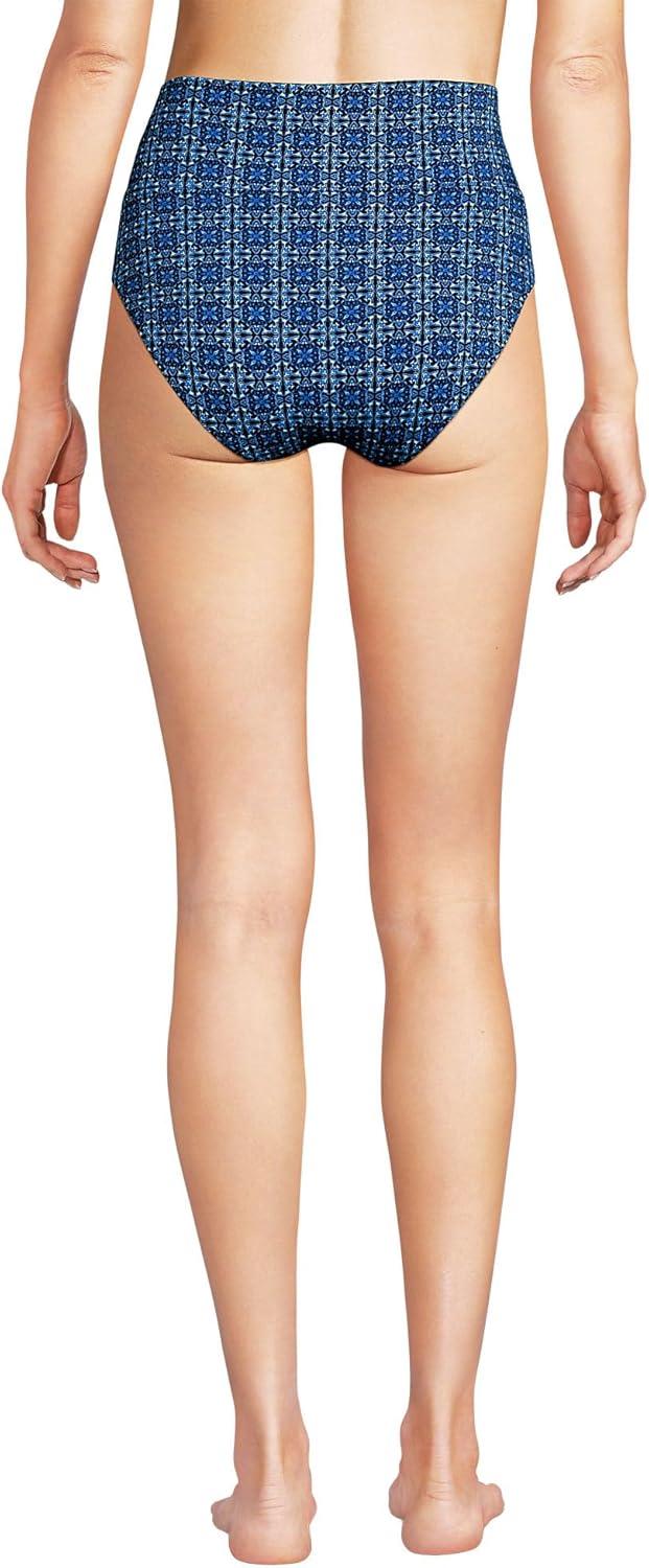 Lands’ End Women’s Chlorine Resistant Pinchless High Waisted Bikini Bottoms(Navy Mosaic Mini Tile)