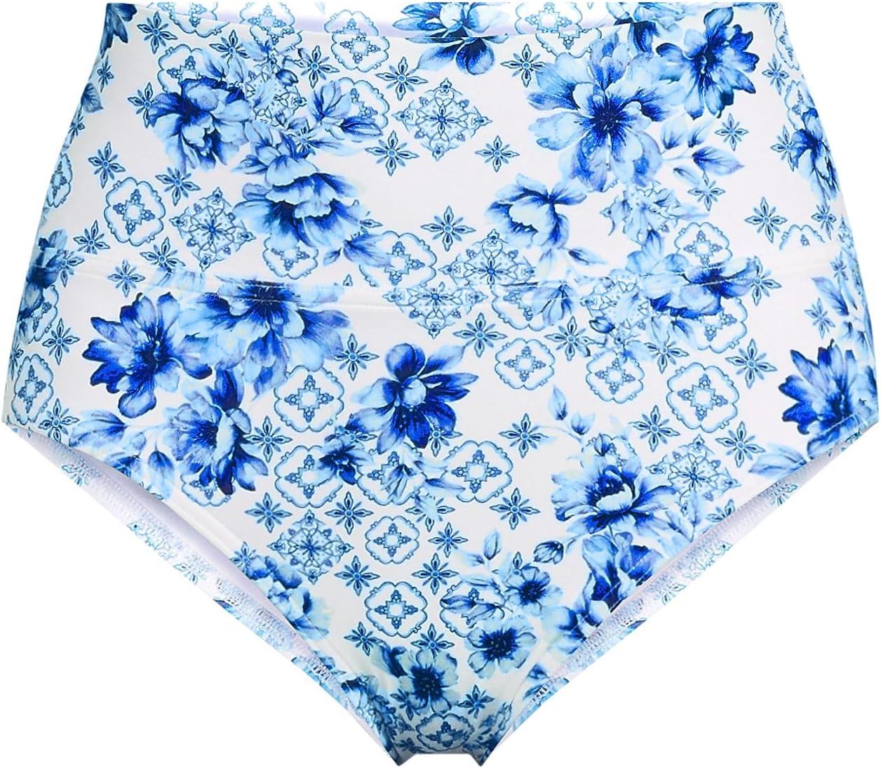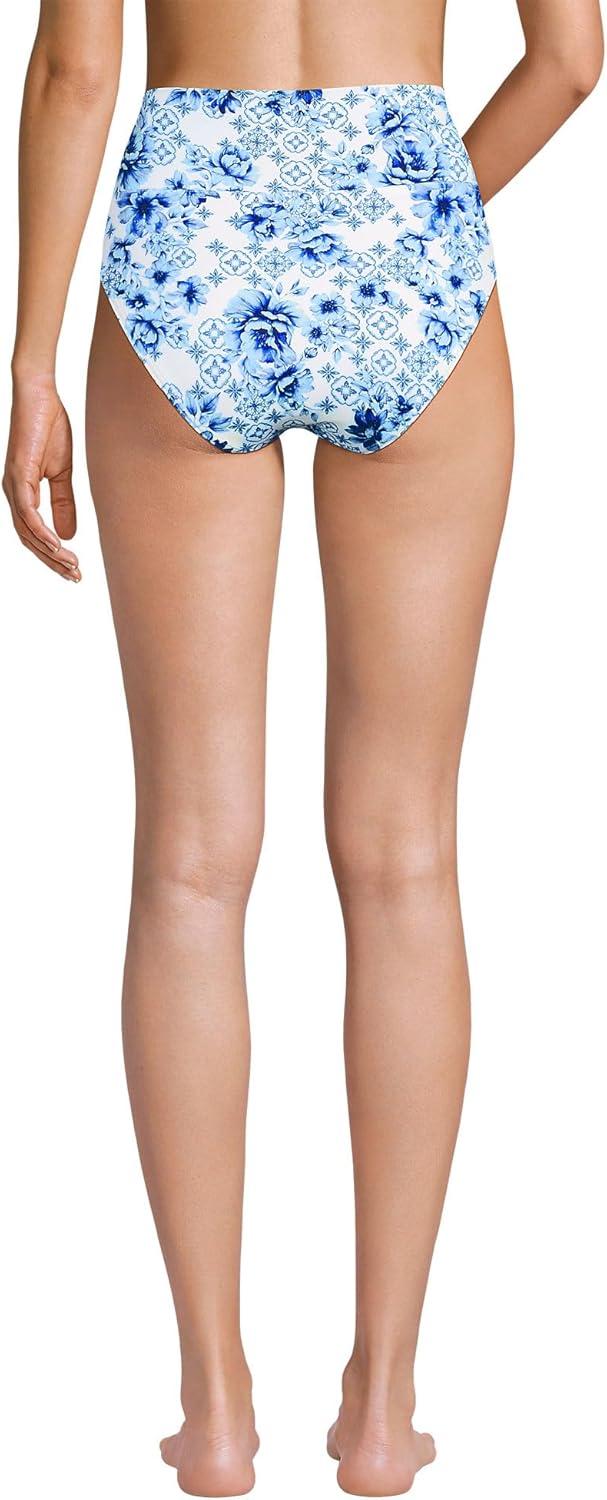 Lands’ End Women’s Chlorine Resistant Pinchless High Waisted Bikini Bottoms(White Mosaic Floral Geo)