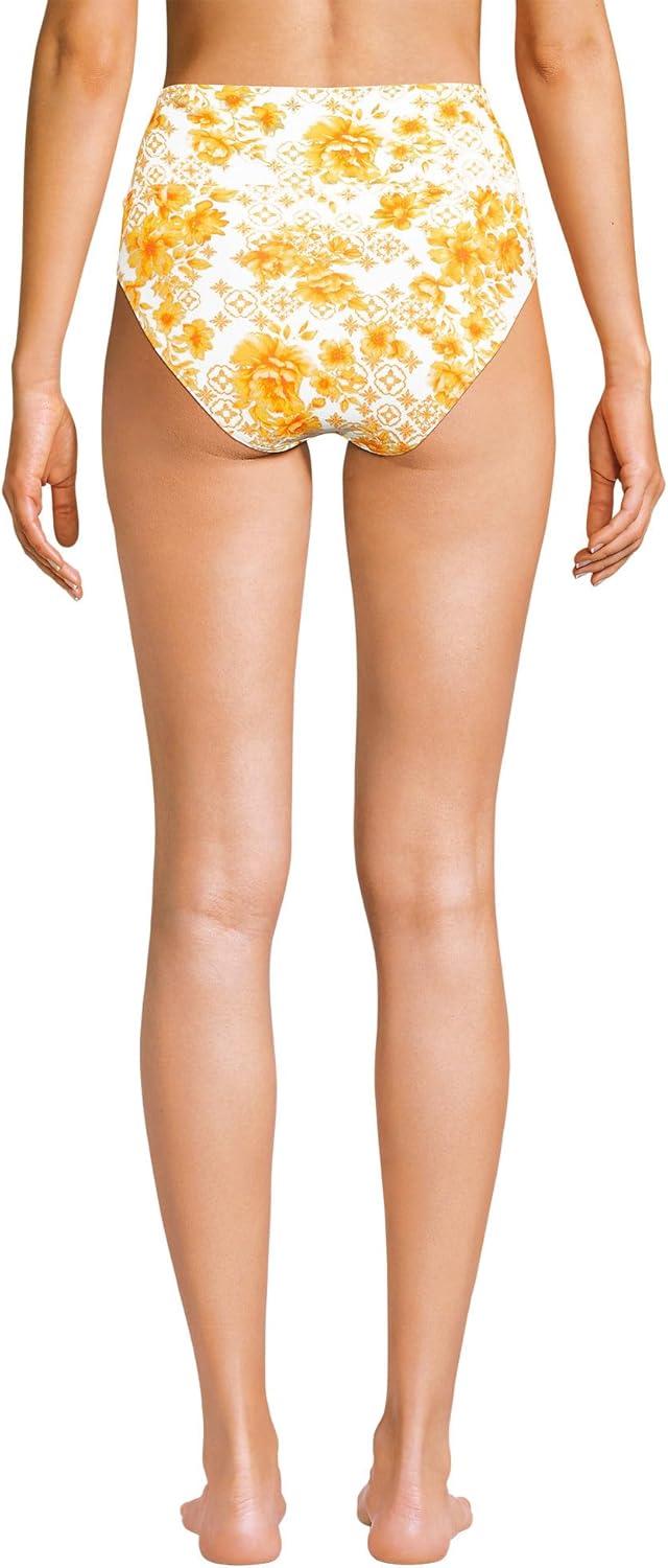 Lands’ End Women’s Chlorine Resistant Pinchless High Waisted Bikini Bottoms(Yellow Mosaic Floral)