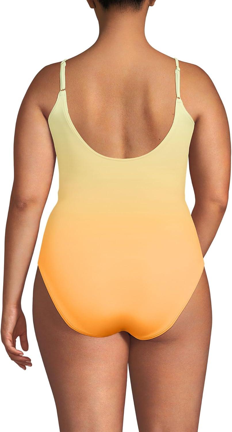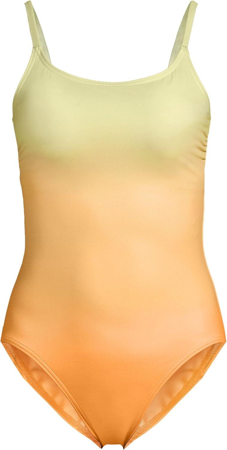 Lands’ End Women’s Chlorine Resistant Scoop Neck High Leg Tugless Tank Thin Strap One Piece Swimsuit Adjustable(Icy Mint/Orange Ombre)