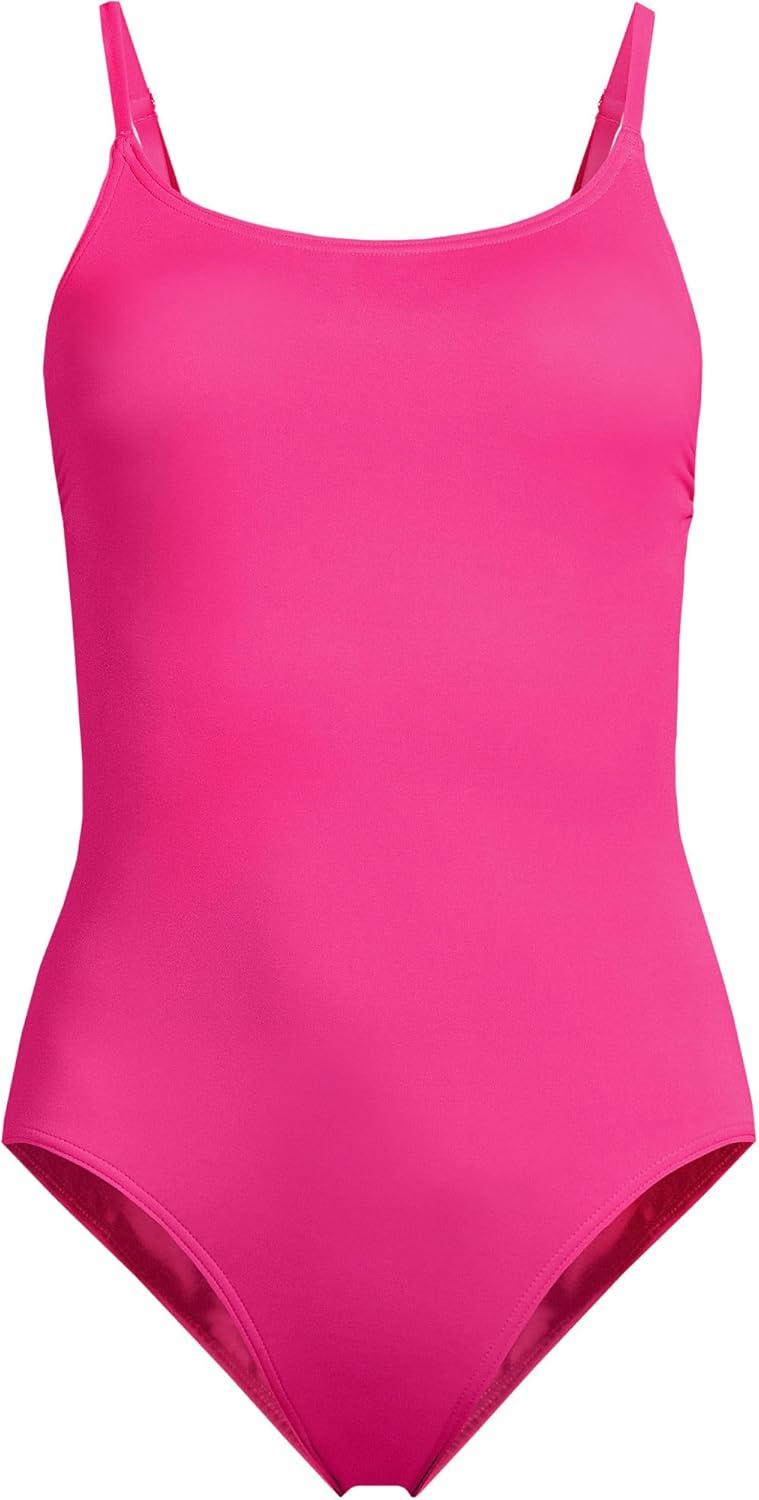 Lands’ End Women’s Chlorine Resistant Scoop Neck High Leg Tugless Tank Thin Strap One Piece Swimsuit Adjustable(Prism Pink)