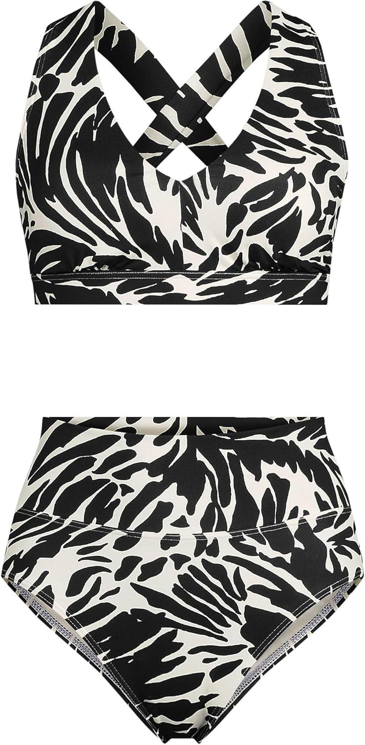 Be the first to review “Lands’ End Women’s Chlorine Resistant V-Neck Midkini Swimsuit Top and High Leg High Waisted Bottoms 2 Piece Set(Black/Egret White Leaf Scroll)”