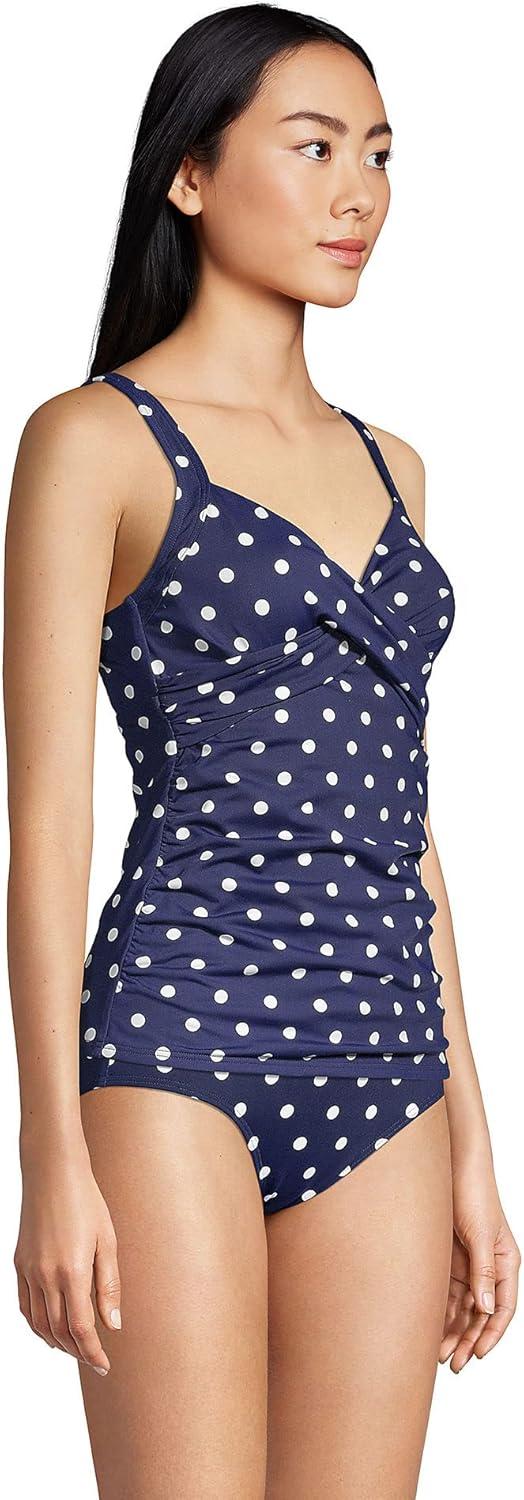 Lands’ End Women’s Chlorine Resistant Wrap Tankini Swimsuit Top(Deep Sea Polka Dot)