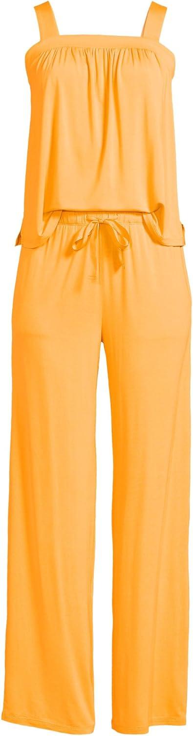 Lands’ End Women’s Cooling 2 Piece Pajama Set – Sleeveless Square Neck Top and Pants(Sweet Mango)