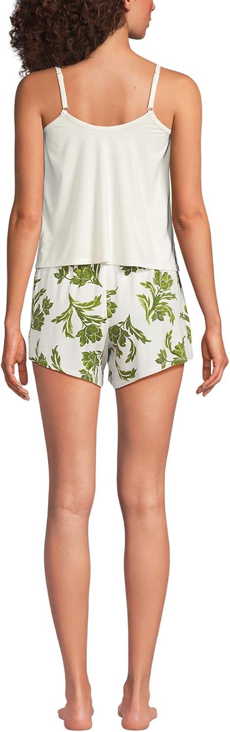 Lands’ End Women’s Cooling 3 Piece Pajama Set – Long Sleeve Top Cami and Shorts(Ivory/Green Elegant Floral)