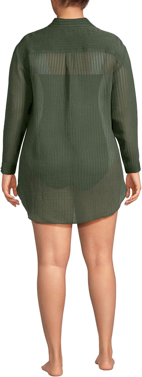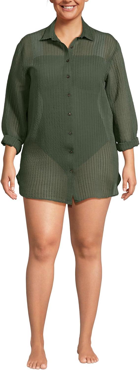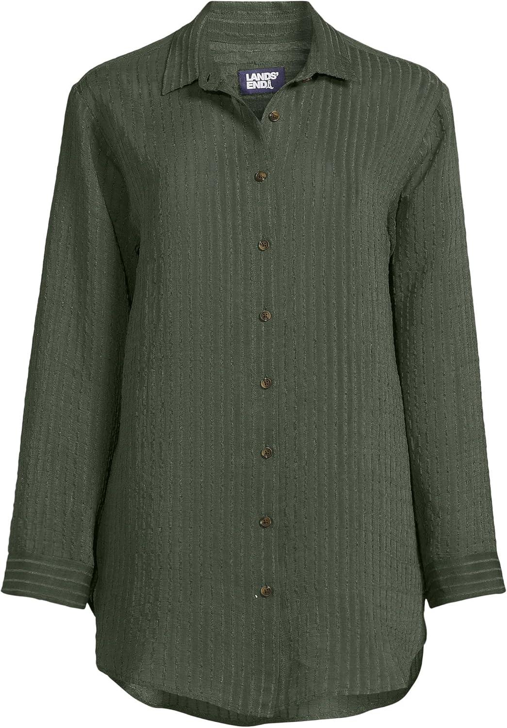 Lands’ End Women’s Cotton Gauze Button Down Swim Cover-up Shirt Dress(Rich Olive Green)