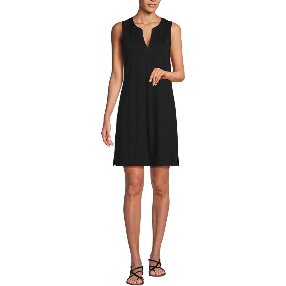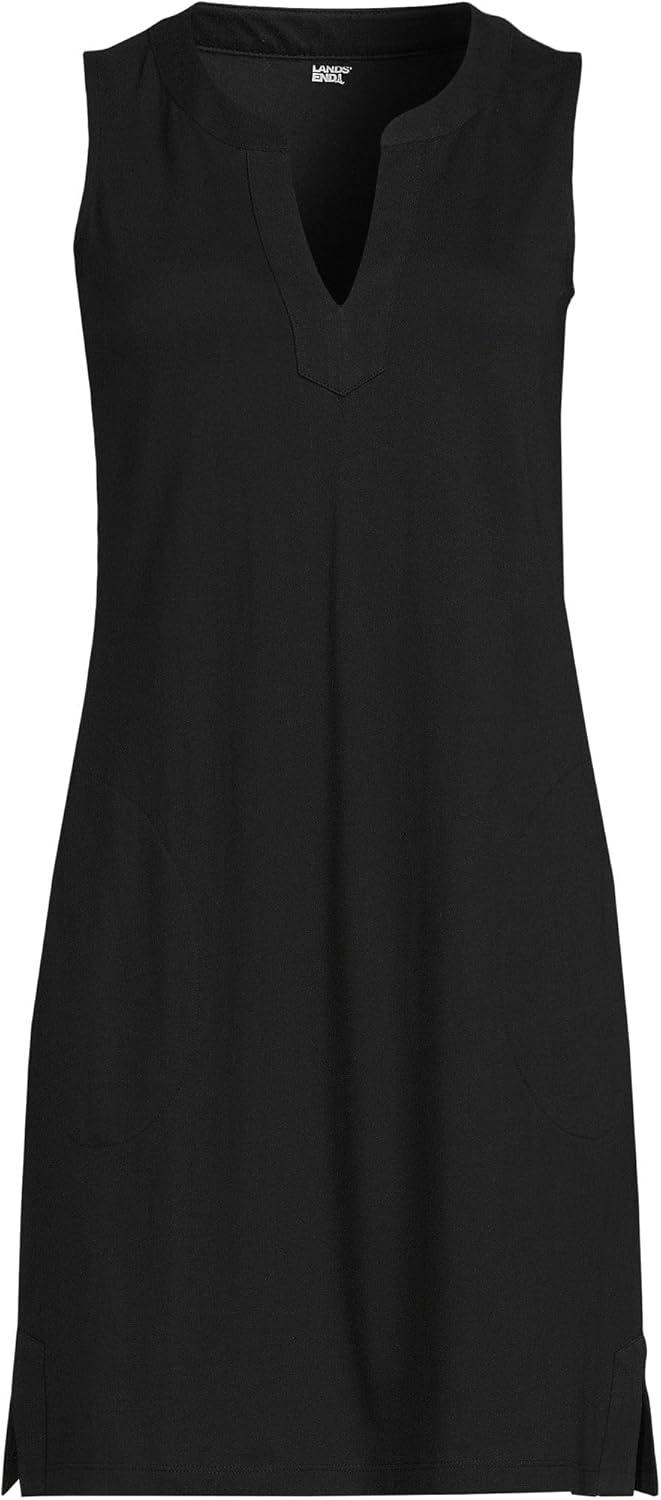 Lands’ End Women’s Cotton Jersey Notch Neck Dress with Soutache(Black)