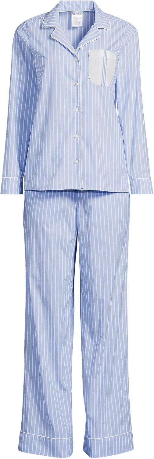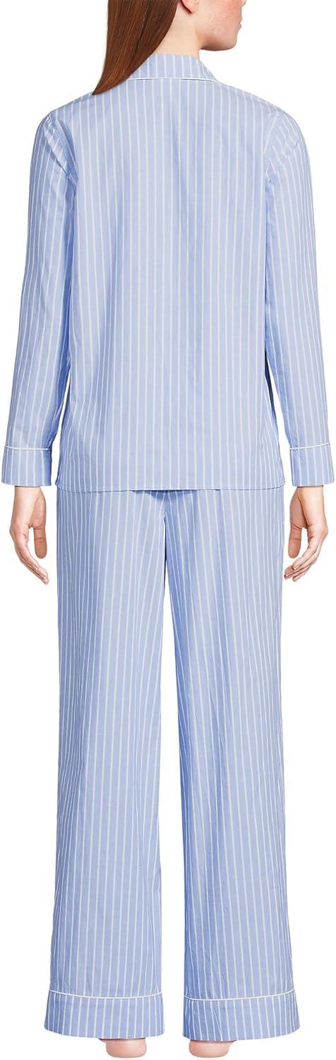 Lands’ End Women’s Cotton Poplin 2 Piece Pajama Set – Long Sleeve Top and Pants(Crisp Blue Stripe)