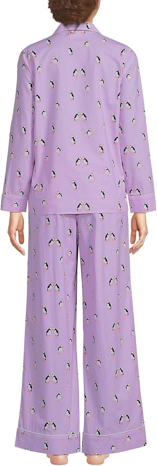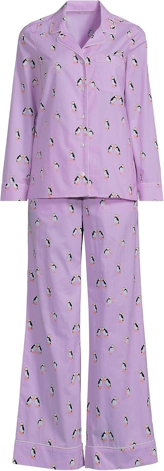 Lands’ End Women’s Cotton Poplin 2 Piece Pajama Set – Long Sleeve Top and Pants(Whisper Lilac Puffins)