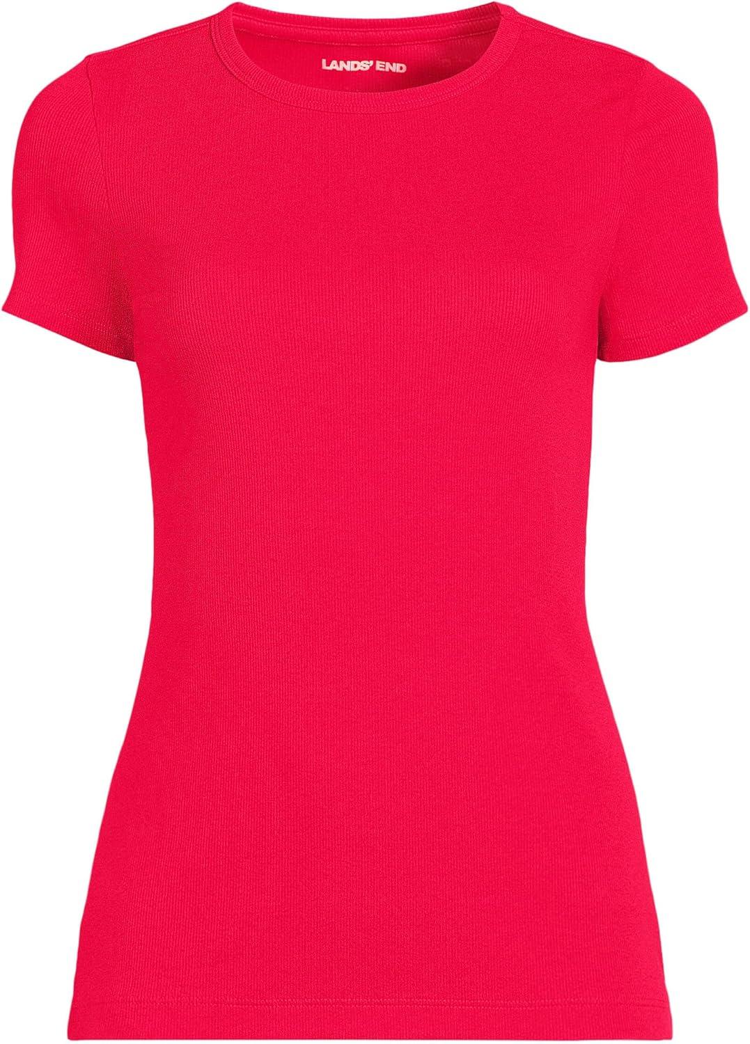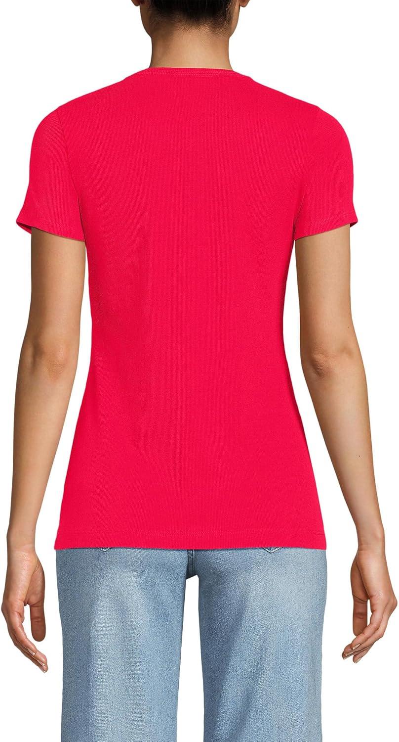Lands’ End Women’s Cotton Rib Knit T-Shirt(Berry Rouge)