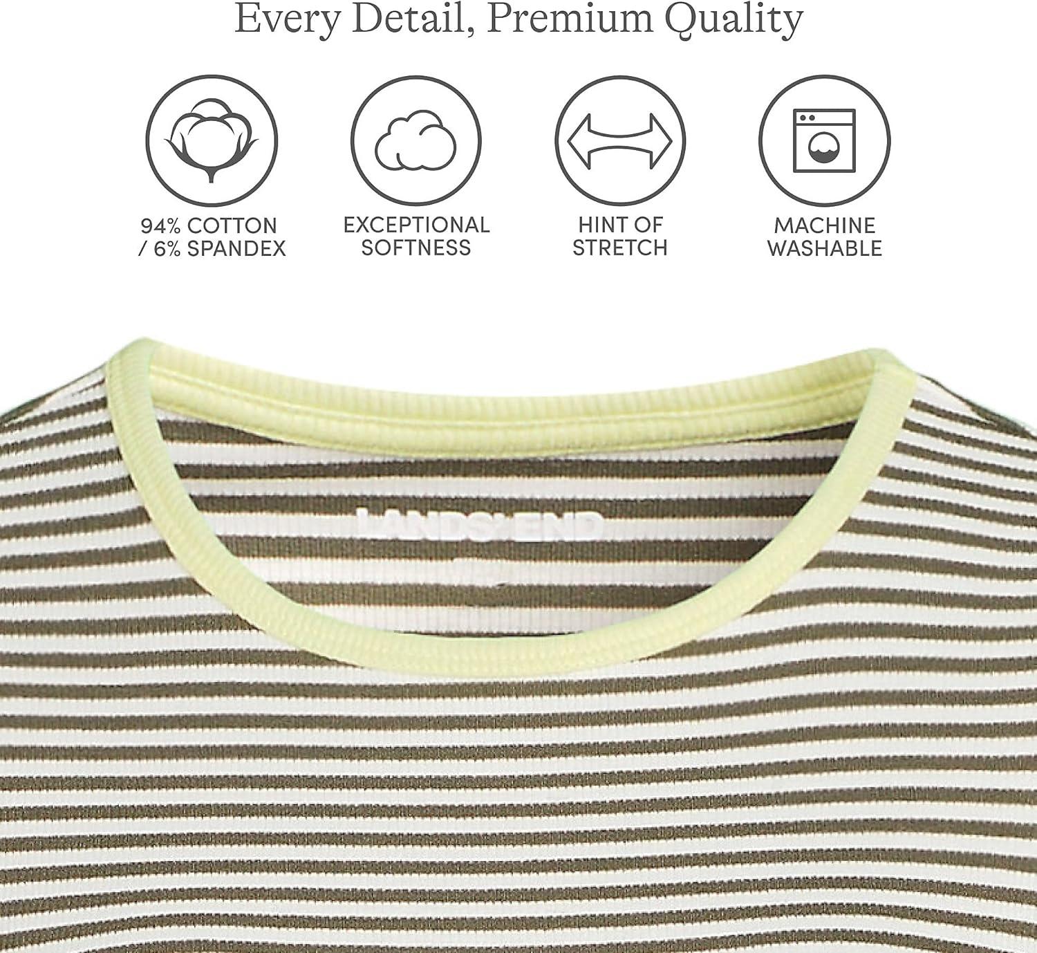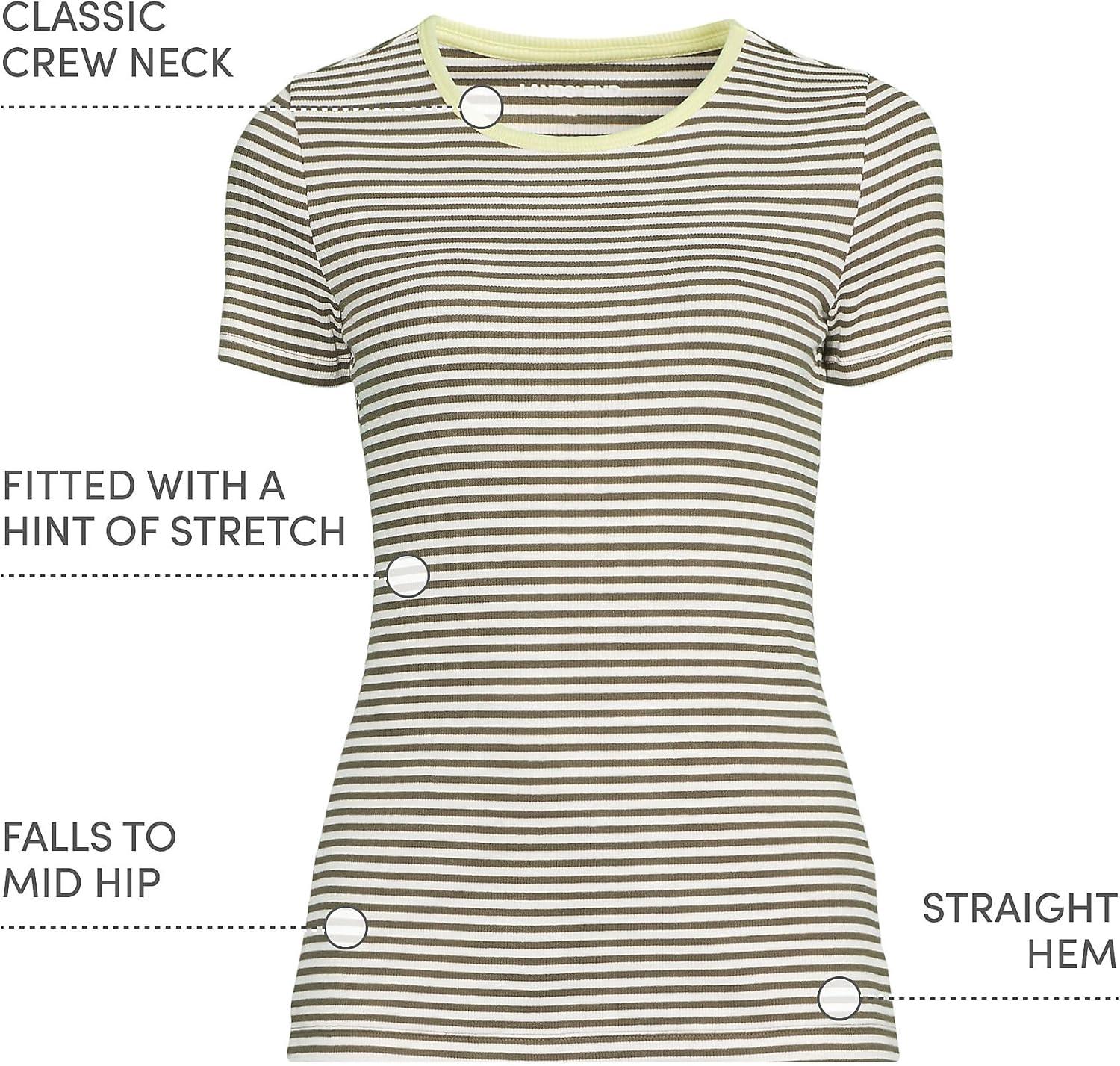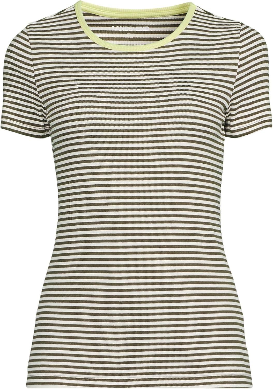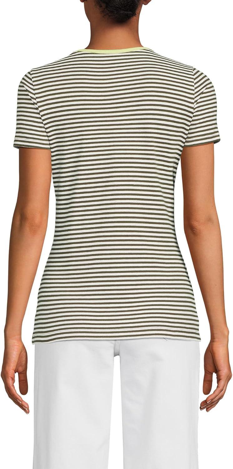 Lands’ End Women’s Cotton Rib Knit T-Shirt(Dark Cilantro Mini Stripe)