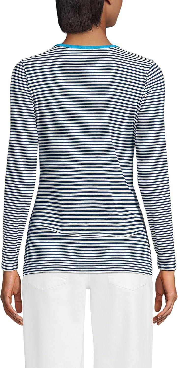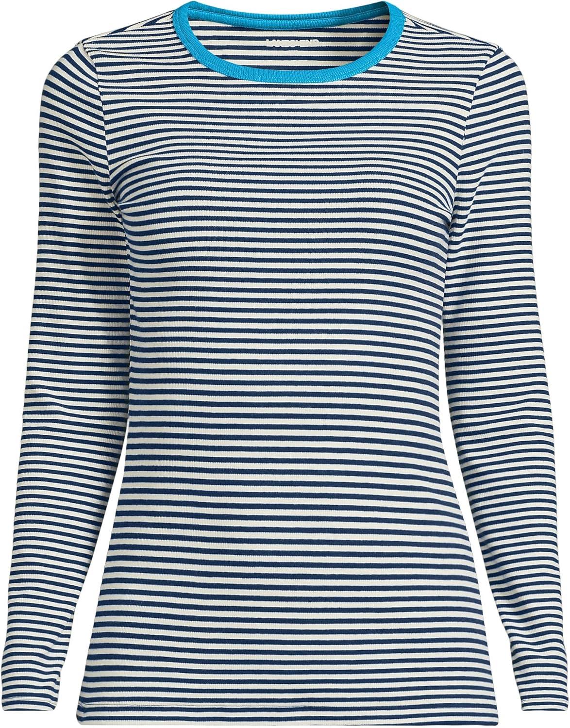 Lands’ End Women’s Cotton Rib Knit T-Shirt(Deep Sea Navy Tiny Stripe)