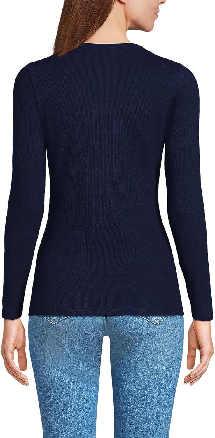 Lands’ End Women’s Cotton Rib Knit T-Shirt(Deep Sea Navy)