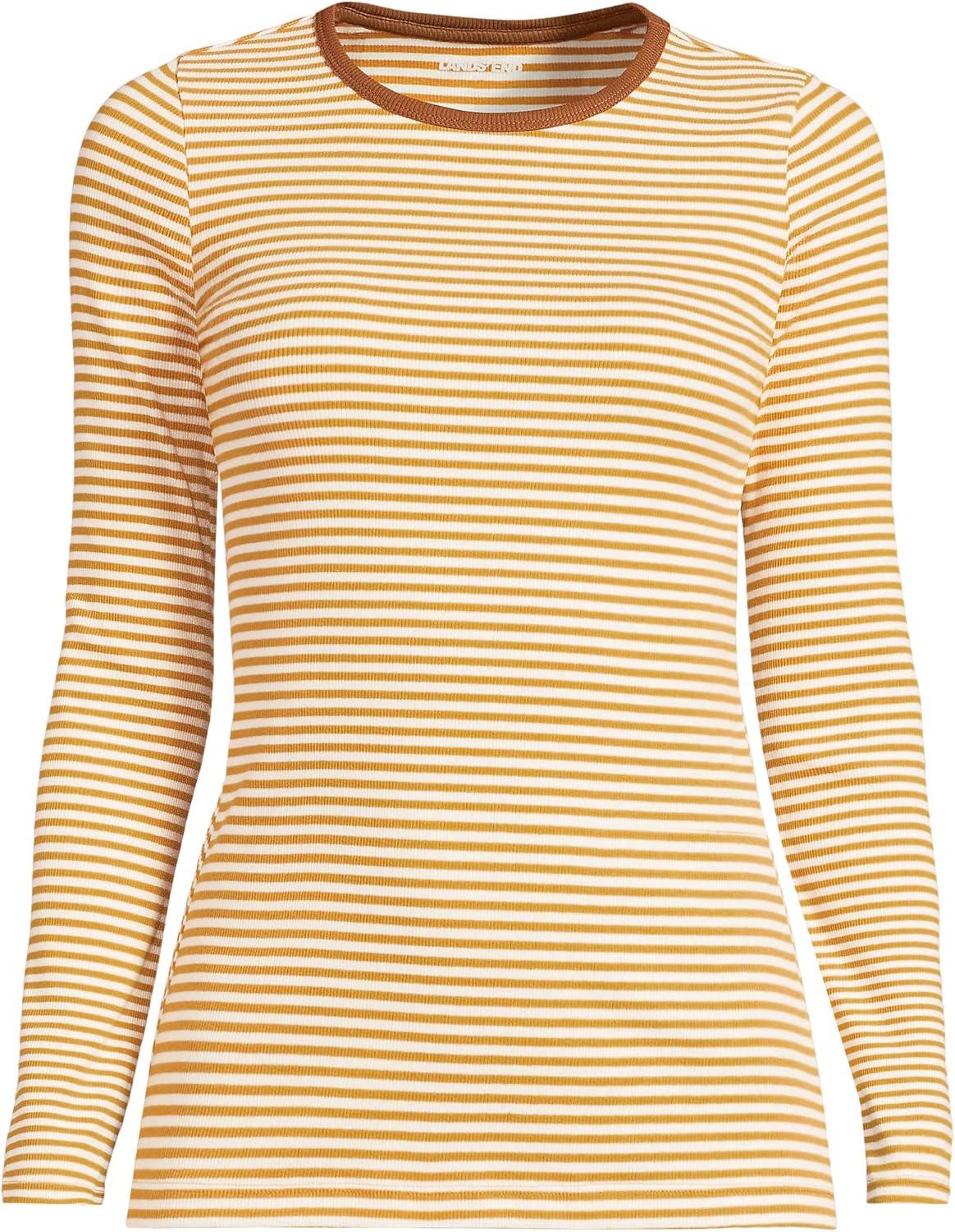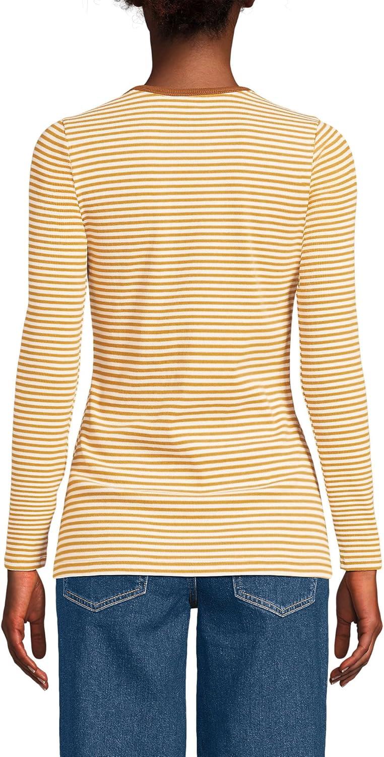 Lands’ End Women’s Cotton Rib Knit T-Shirt(Dijon Gold Tiny Stripe)