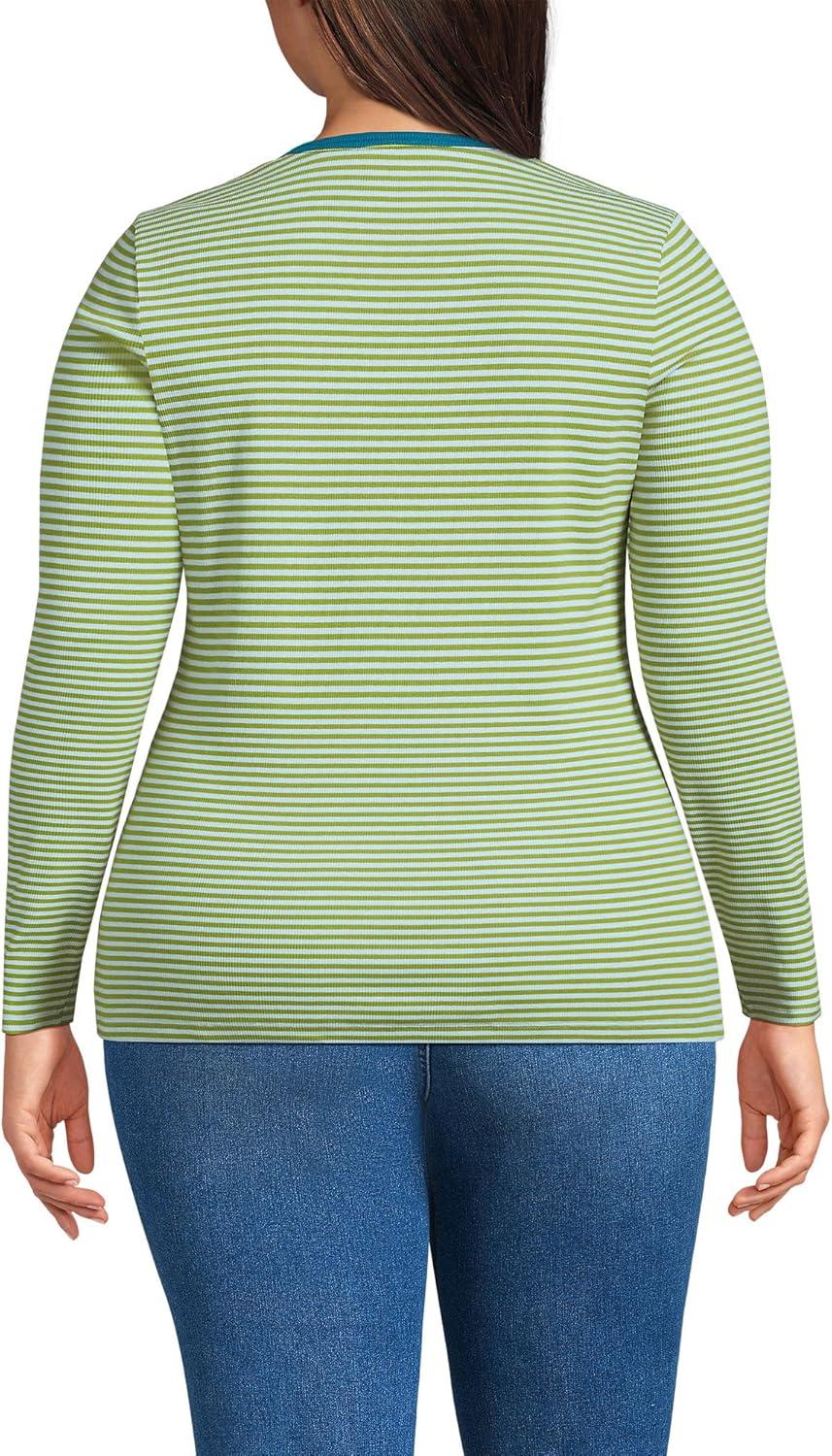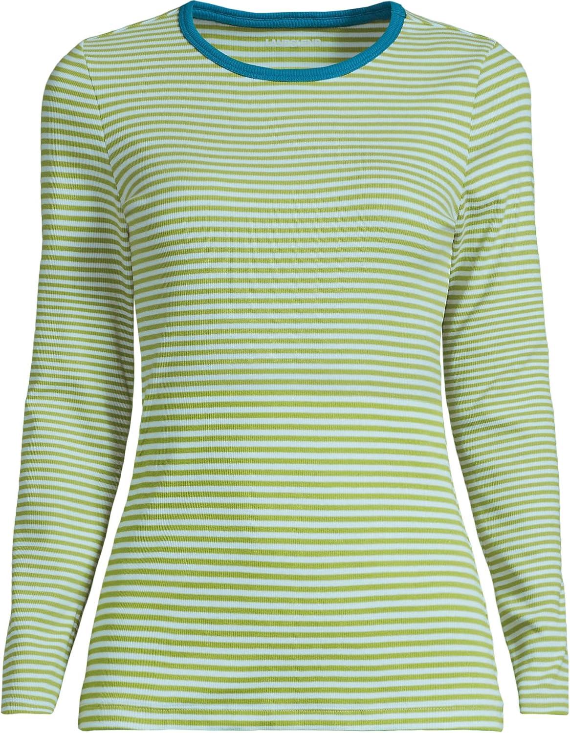Lands’ End Women’s Cotton Rib Knit T-Shirt(Ice Blue/Pear Tiny Stripe)