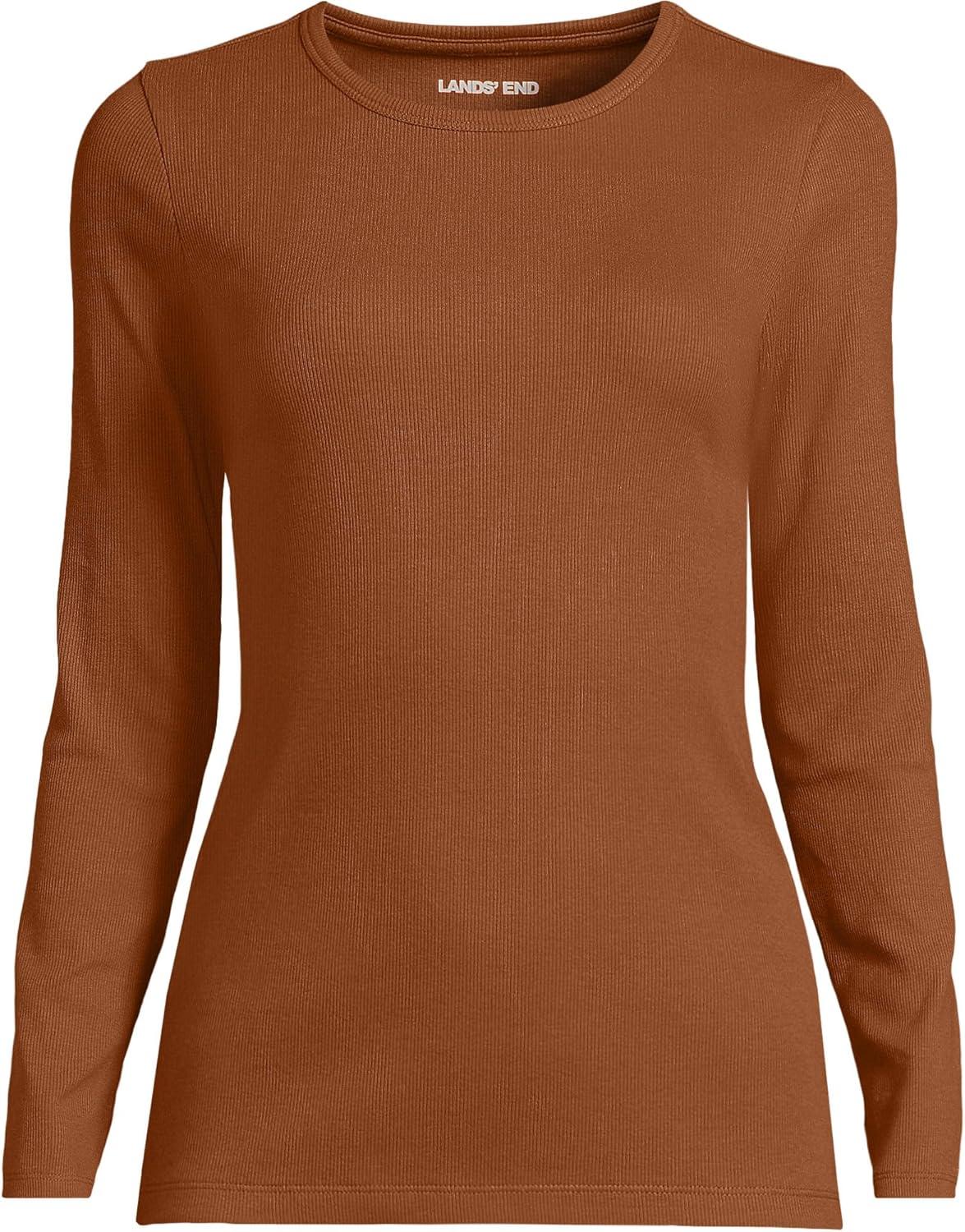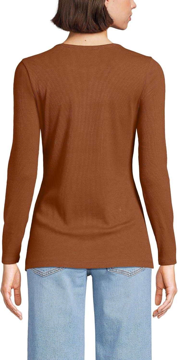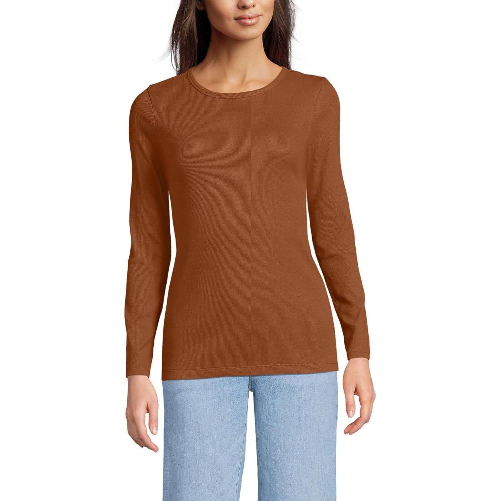 Lands’ End Women’s Cotton Rib Knit T-Shirt(Rich Ginger Brown)