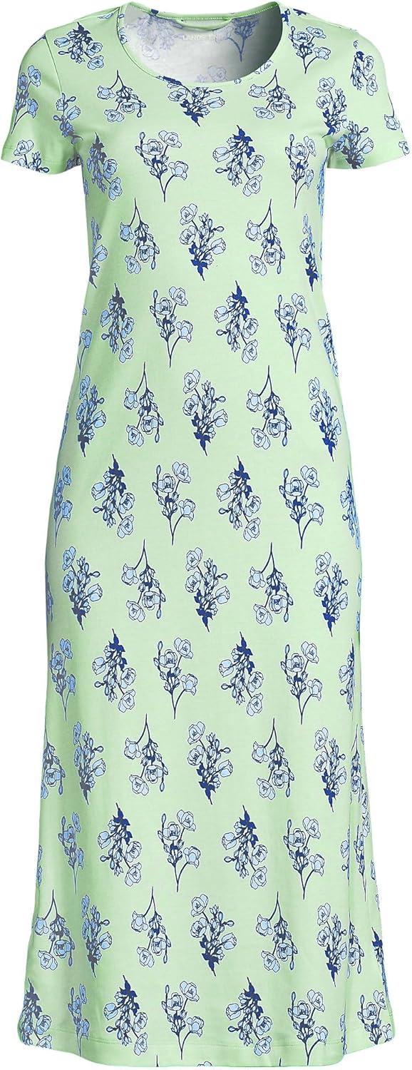 Lands’ End Women’s Cotton Short Sleeve Midcalf Nightgown(Mint/Blue Sky Vintage Floral)