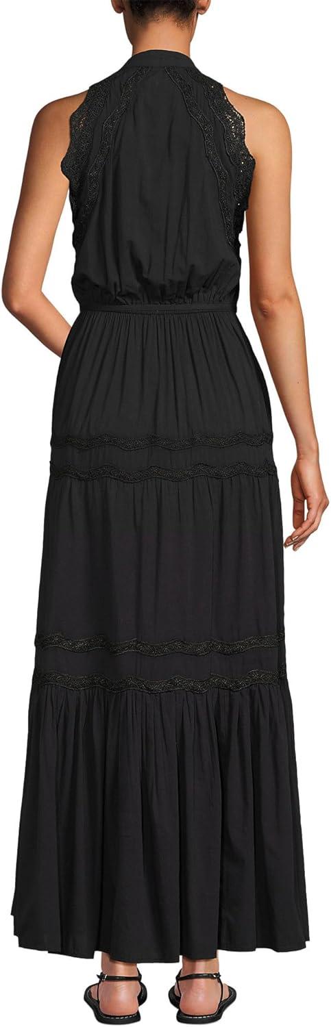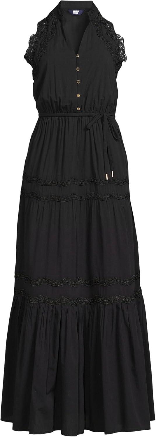 Lands’ End Women’s Cotton Voile Halter Tiered Maxi Dress(Black)