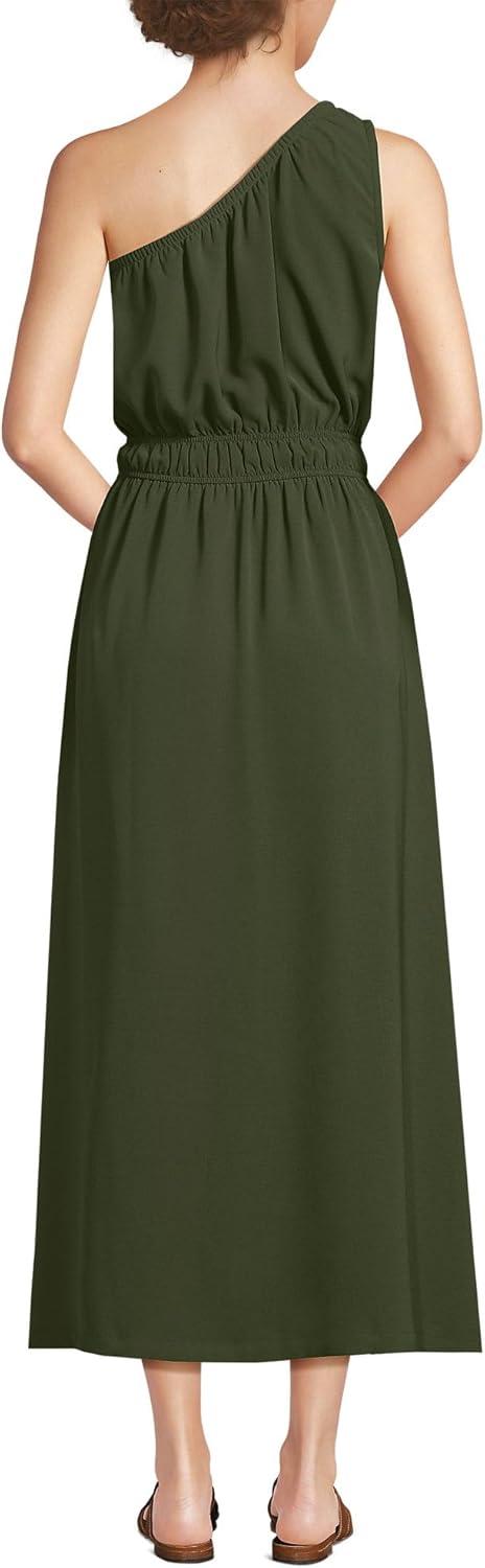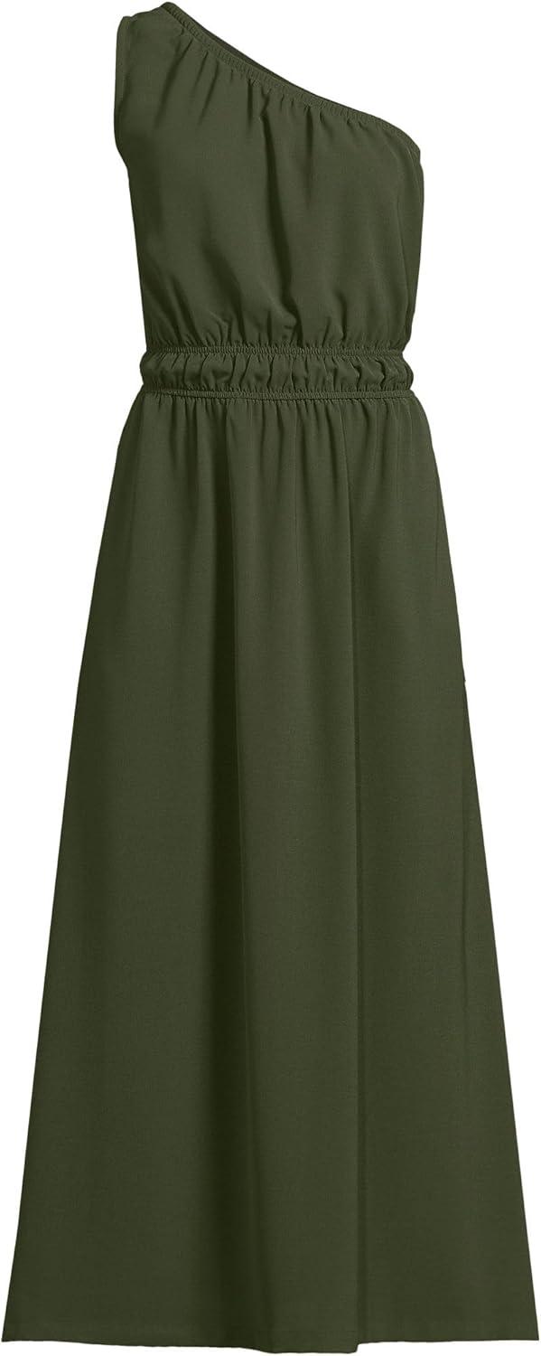 Lands’ End Women’s Creaseless One Shoulder Midi Dress(Dark Cilantro Green)