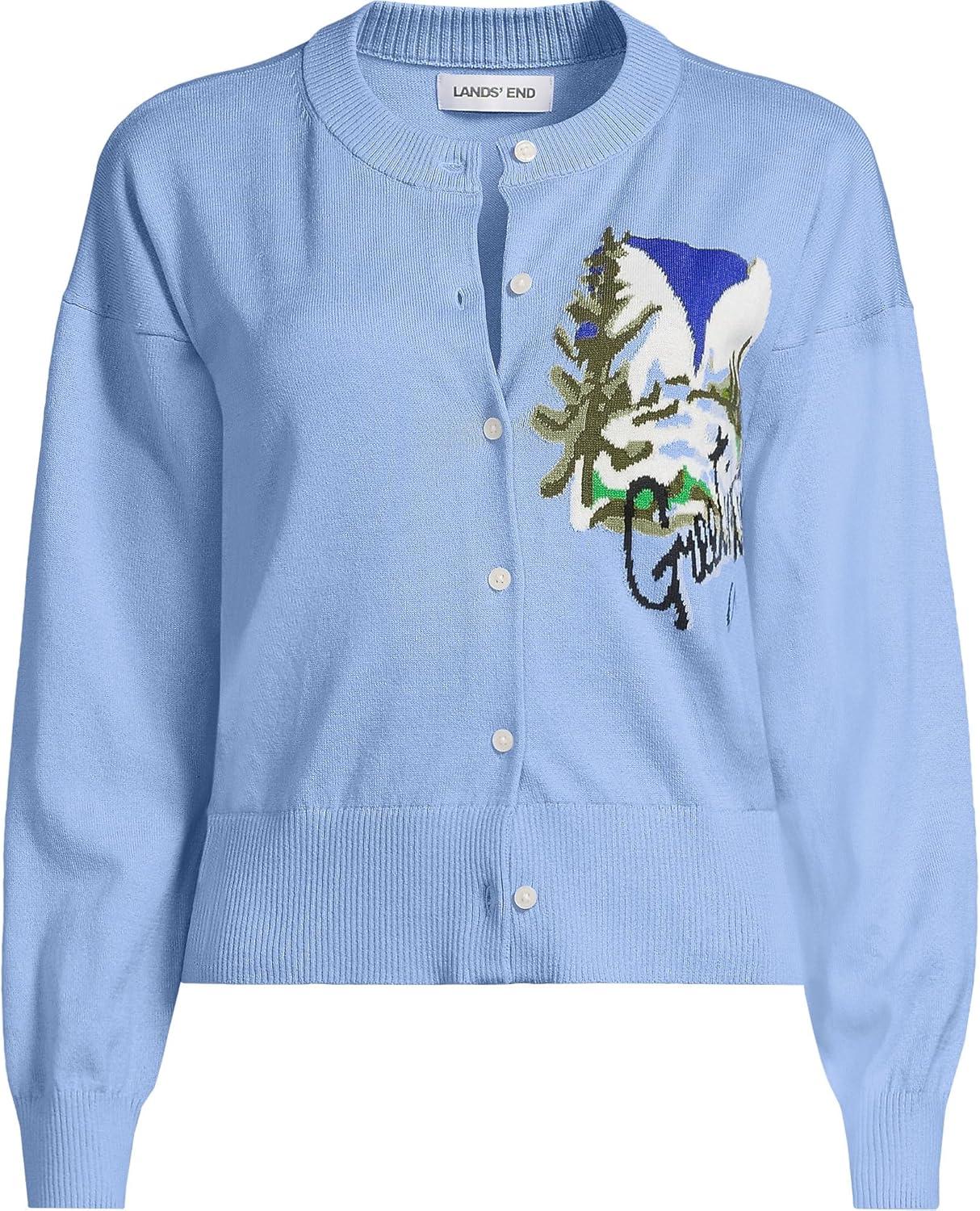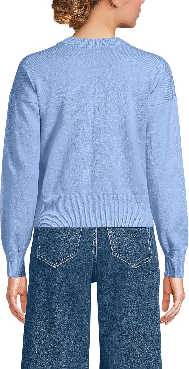 Lands’ End Women’s Cropped Fine Gauge Crew Neck Cardigan Sweater(Greetings/Blue)