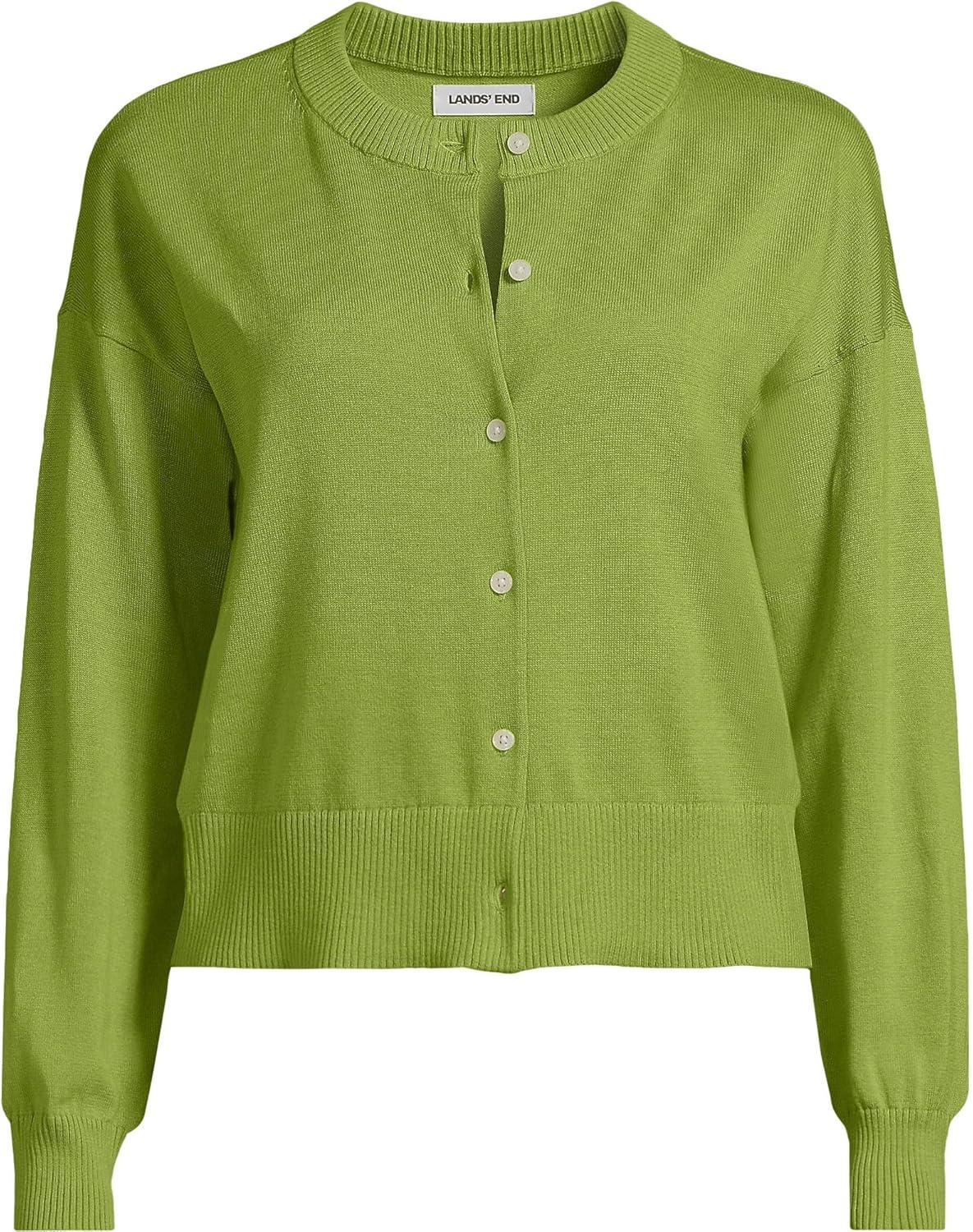 Lands’ End Women’s Cropped Fine Gauge Crew Neck Cardigan Sweater(Winter Pear)